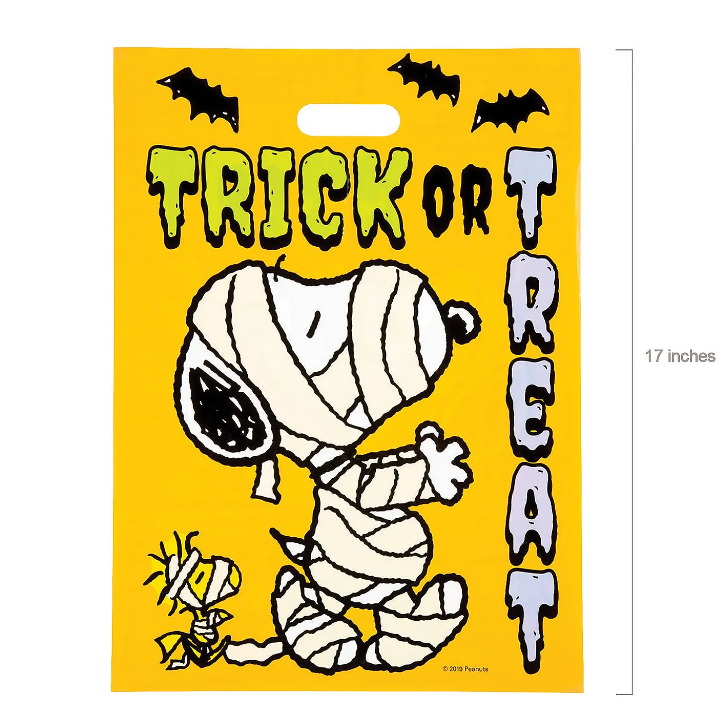 • Perfect Size For Trick-Or-Treaters: These Treat Bags Are Just The Right Size For Hauling Around The Neighborhood To Collect Candy. They Have Lots Of Room To Carry All Of Your Treats And Goodies.• Spooky Style: These Bags Feature Spookified Designs Which Are Sure To Fit Right In With All Of The Halloween Fun And Decorations.• Say Thanks With Sweets: You Can Load These Bags Up With Candy And Party Favors To Hand Out At Your Next Costume Party Or Event. Your Guests Will Love The Thoughtful Gesture!Product Description:Celebrate Halloween With The Peanuts
