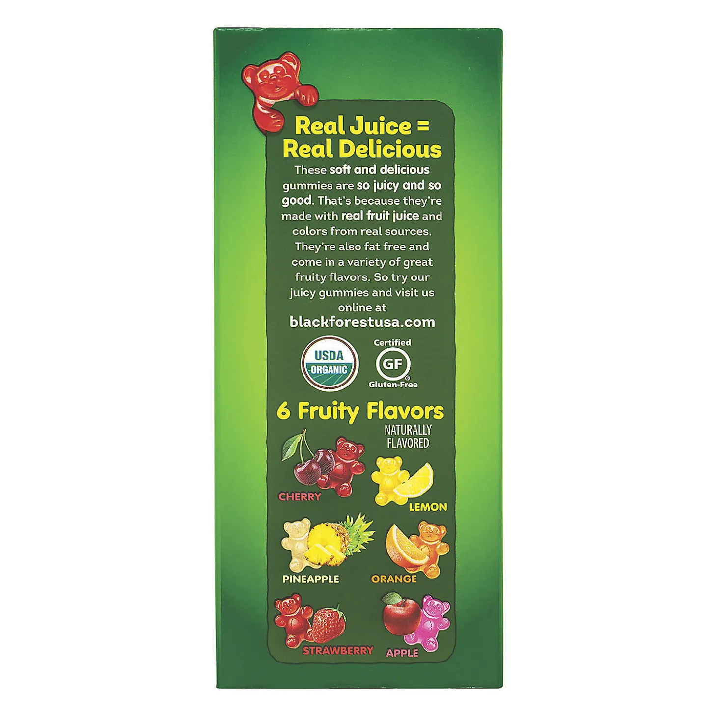 Grab A Pack Of These Black Forest Organic Gummy Bears, 0.8 Oz, 65 Count And Chew Your Way Through Deliciously Fruity Flavors Like Orange, Apple, Cherry, Lemon And Pineapple. These 0.8 Ounce Pouches Are Gluten-Free And Fat-Free. With Only 70 Calories Per Serving, These Organic Gummy Bears Are Soft And Delicious. Black Forest Organic Gummy Bears, 0.8 Oz, 65 Count Are Made With Colors From Natural Sources And Are Certified Organic. Perfect For Snacking On-The-Go, Or Sitting Around The Office When You Need A Sweet Pick Me Up! Edibles Are Non-Returnable. For More Information, Visit Our “Return Policy” Page Located On Our Website. Special Shipping Information: This Item Ships Separately From Other Items In Your Order. This Item Cannot Ship To A P.O. Box. This Item May Be Subject To Additional Processing Days. Item Is Not Eligible For Expedited Shipping