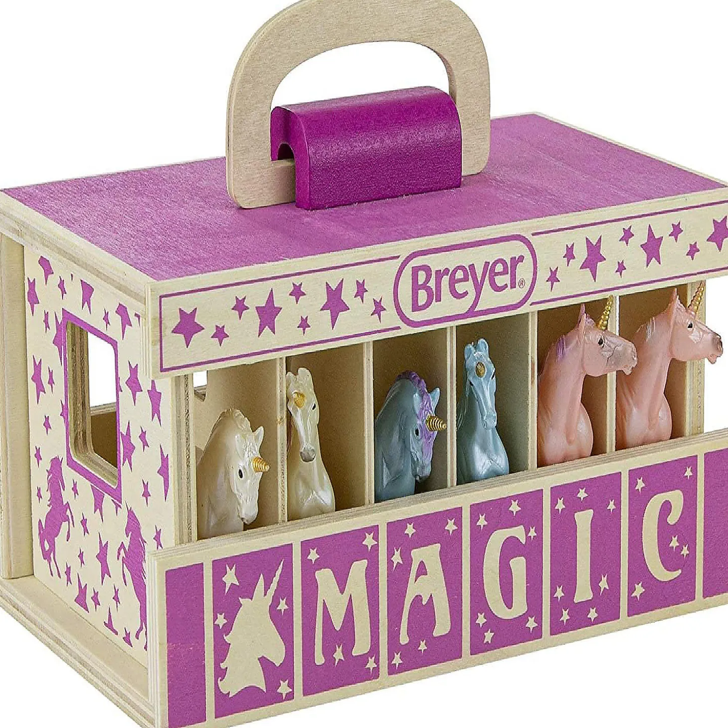Breyer Unicorn Magic Wooden Carry Stable Playset W/ 6 Unicorns