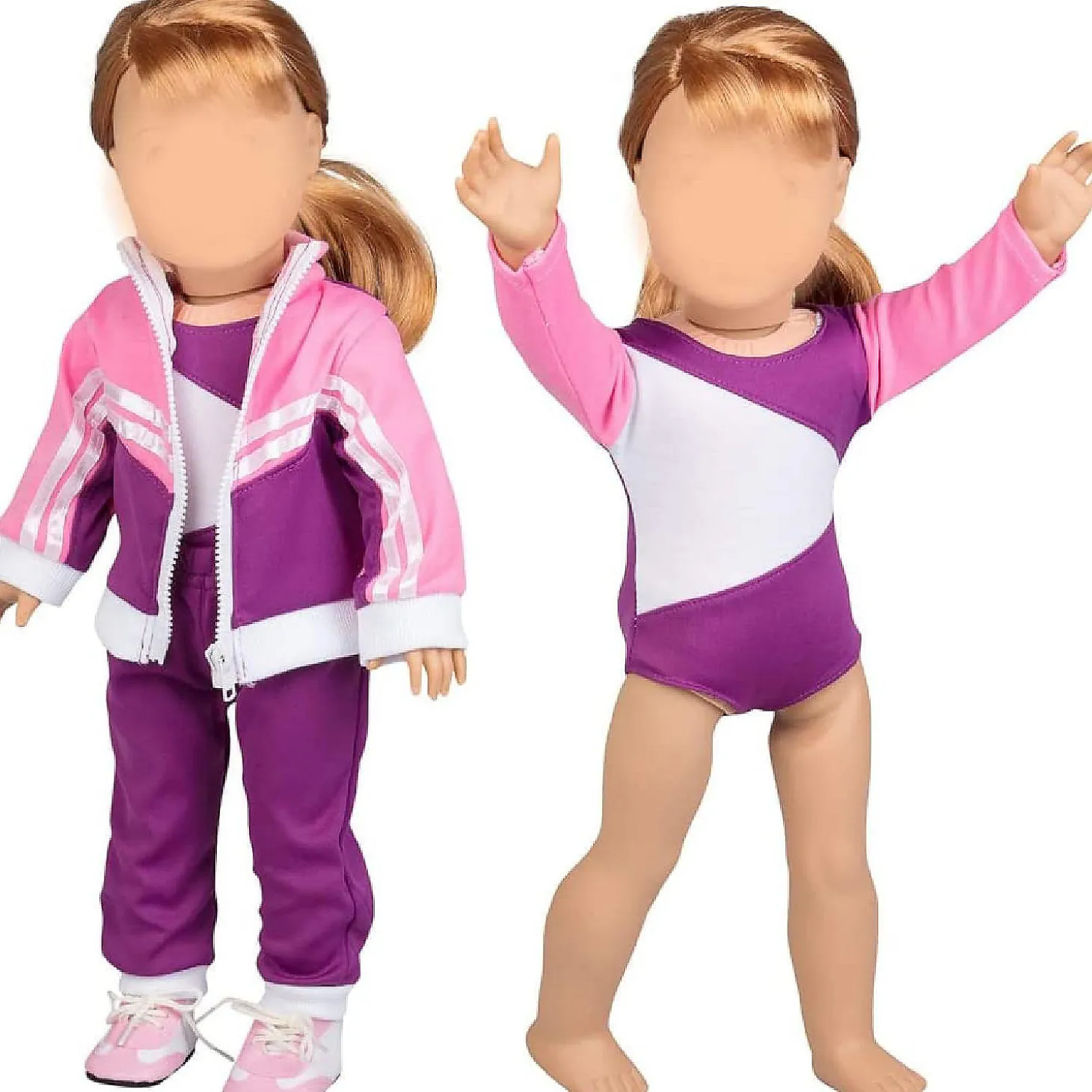 Dress Along Dolly Gymnastics Doll Outfit For 18″ Dolls (4 Pc Set) – Sports Premium Costume Handmade Clothes Include Leotard, Warm-Up Pants & Jacket, Sneakers