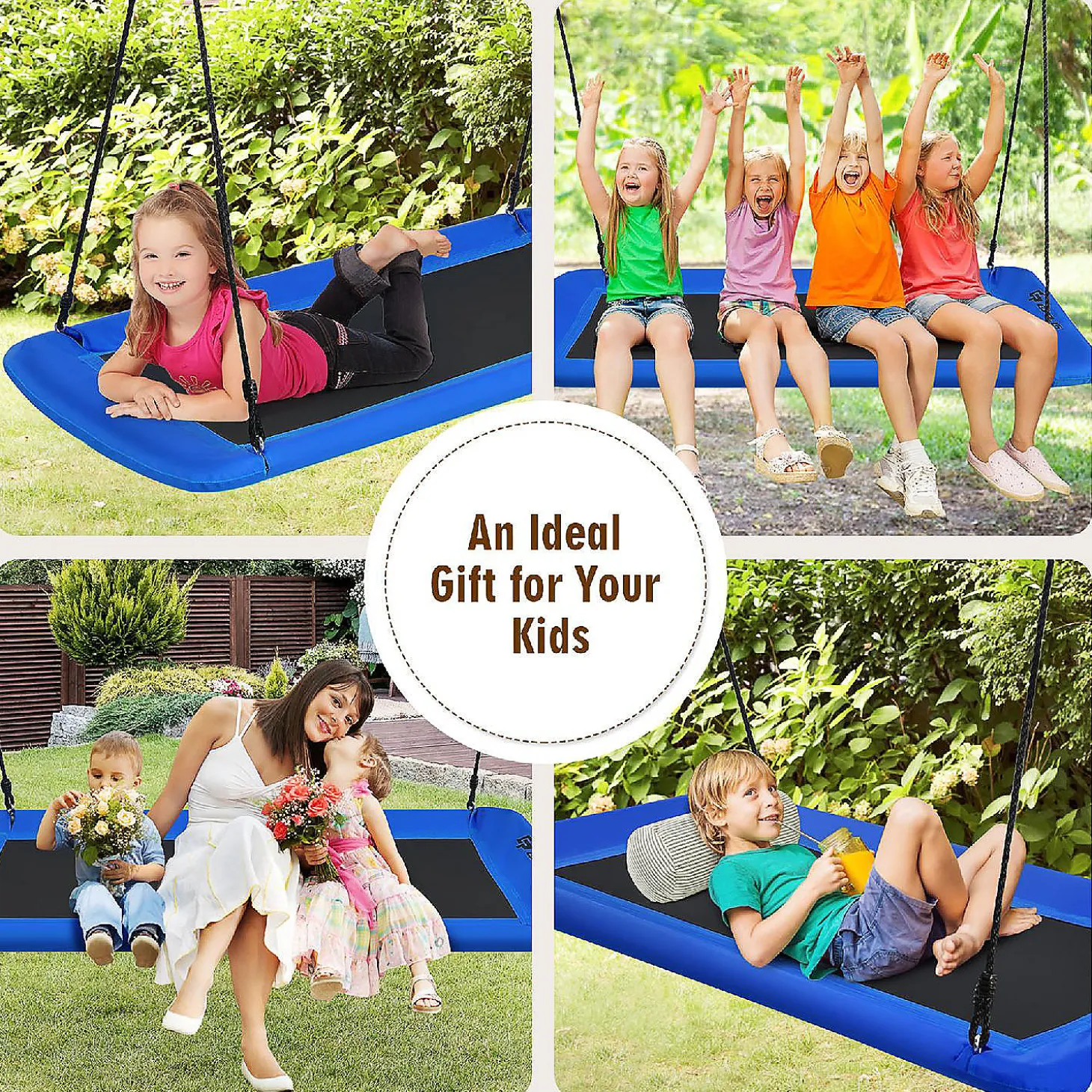 Goplus 700Lb Giant 60” Platform Tree Swing Outdoor W/ 2 Hanging Straps Blue