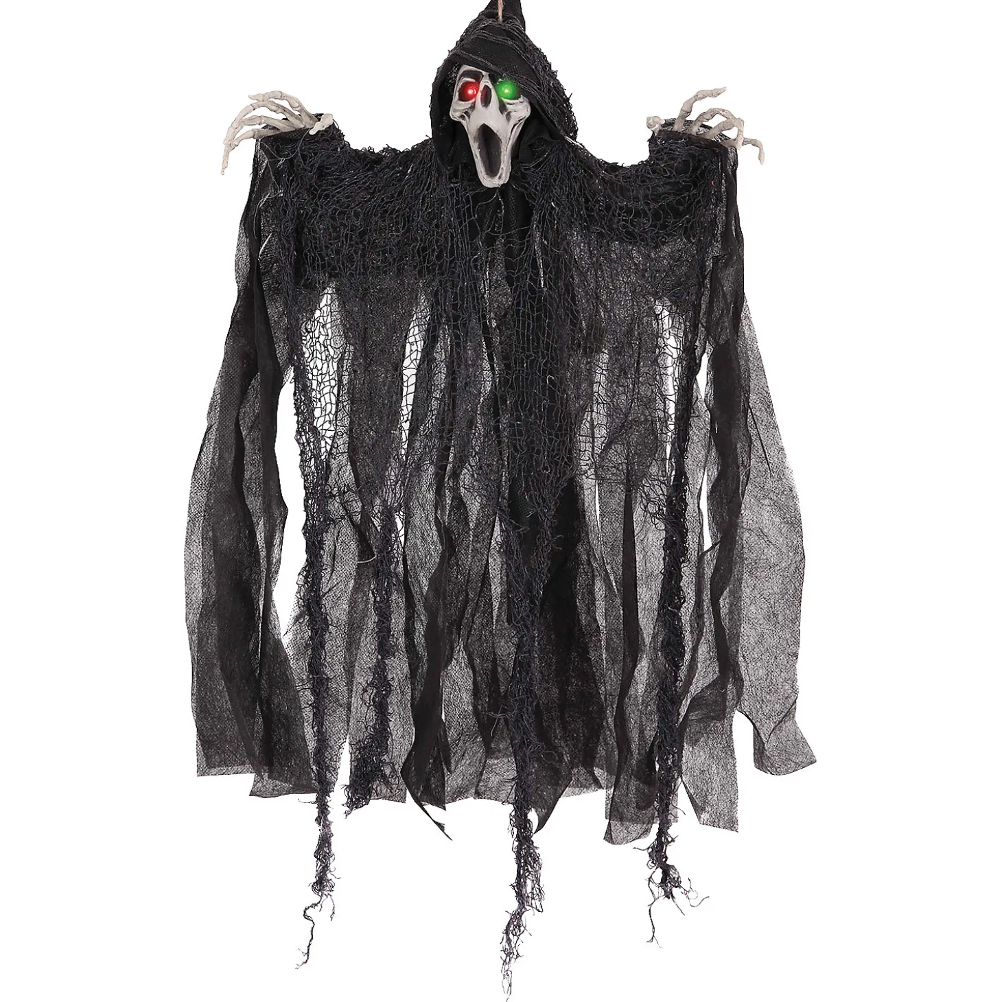 This Hanging Ghoul Is Great For Smaller Areas In Your Haunted House Or Home Haunt. Buy A Few Of These And Scatter Them Around Your Haunted Area For A Real Fright! Uses 3 Ag13 Watch Batteries Which Are Not Included. 20 X 18 X 3 Inches.