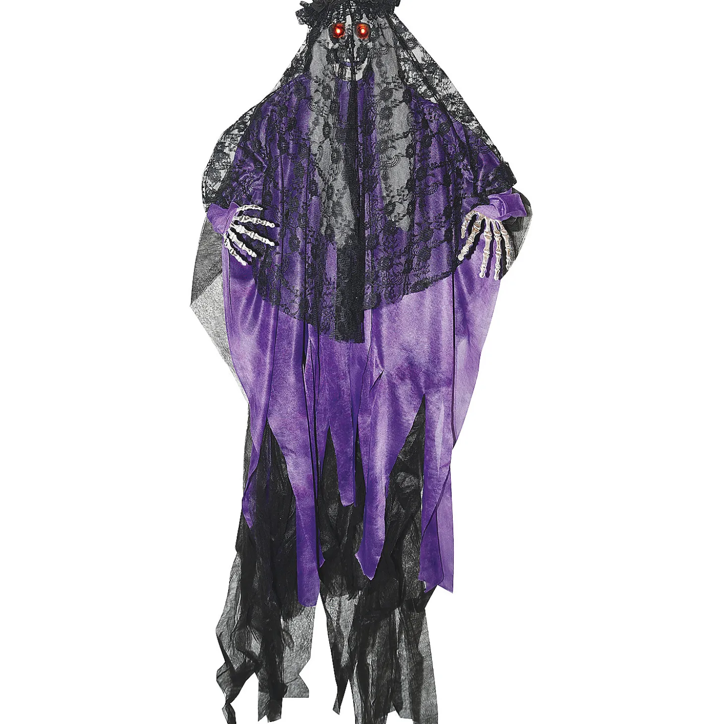 It’Ll Turn Your House Into A Ghost Train. The Bewitched Ghost Bride With Movement, Light & Sound Is An Especially Beautiful Ghost Decoration Figure For Halloween. The Dead Bride Is Wearing A Black And Purple Dress That May Have Been Elegant Once. Her Rugged Lace Veil Hides The Face Of The Ghost Bride. Underneath You Can See The Skull Of The Halloween Ghost Bride. Her Eyes Glow Blood-Red And Provide Plenty Of Thrills On Halloween Or Walpugi Night.