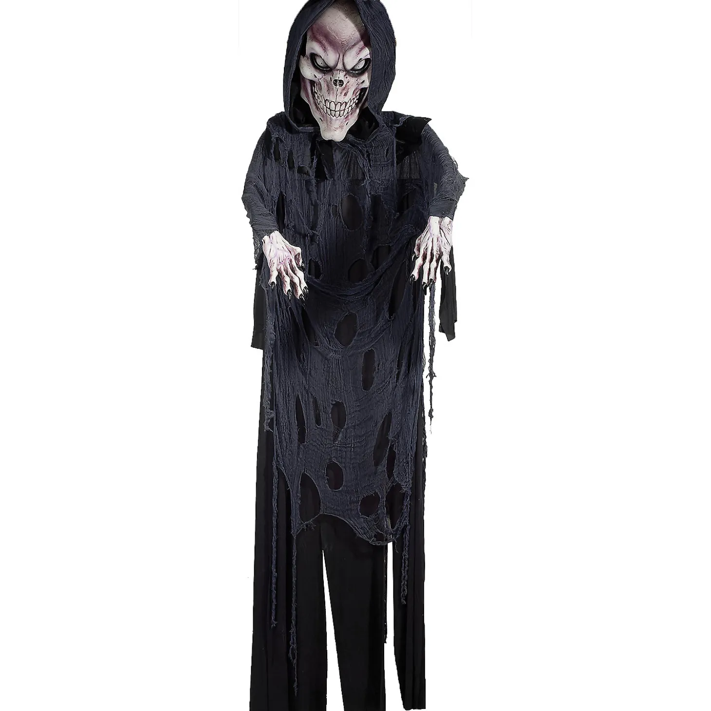 Great For A Haunted House Or Your Own Home Display! Includes: 12 Foot Hanging Reaper With Large Polyfoam Head And Hands With Frame Draped With Black Robe.