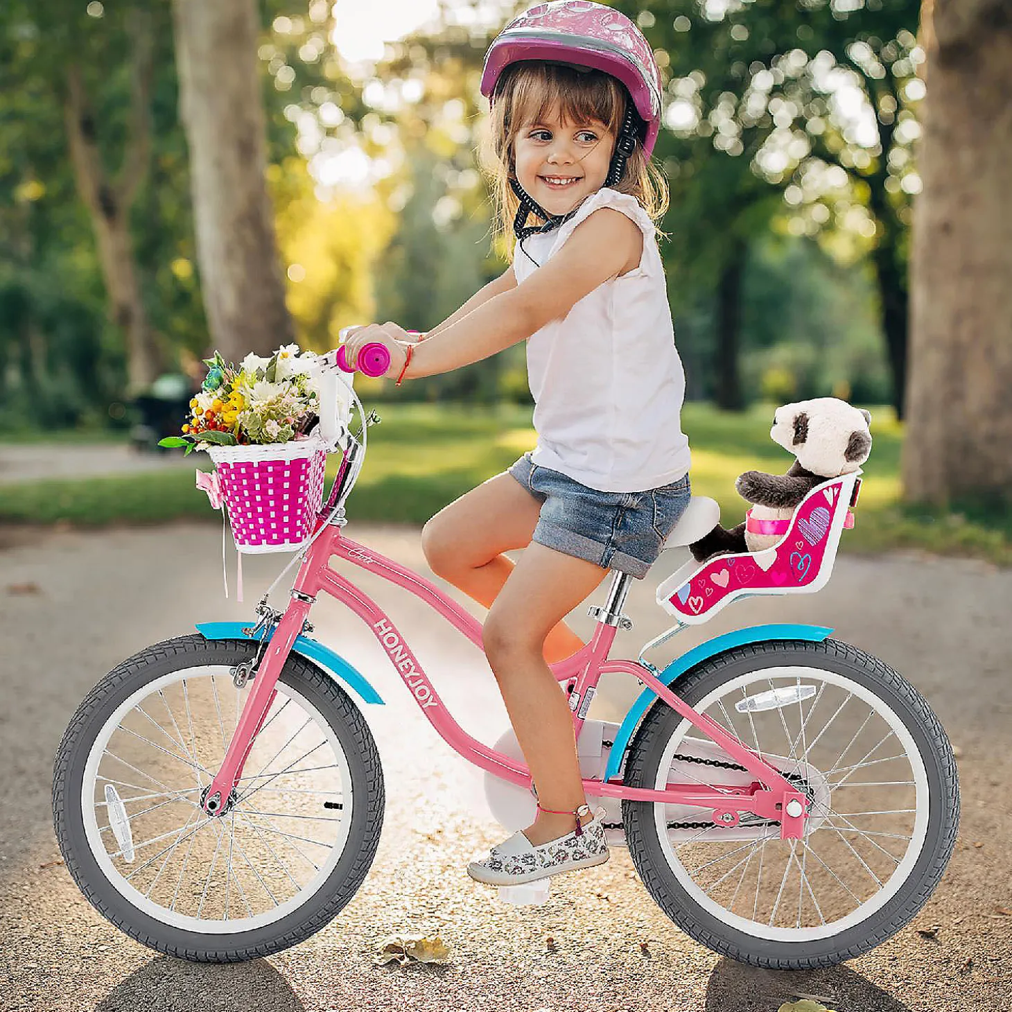Honeyjoy 18″ Kids Bicycle W/Training Wheels & Basket 5-9Yrs Pink