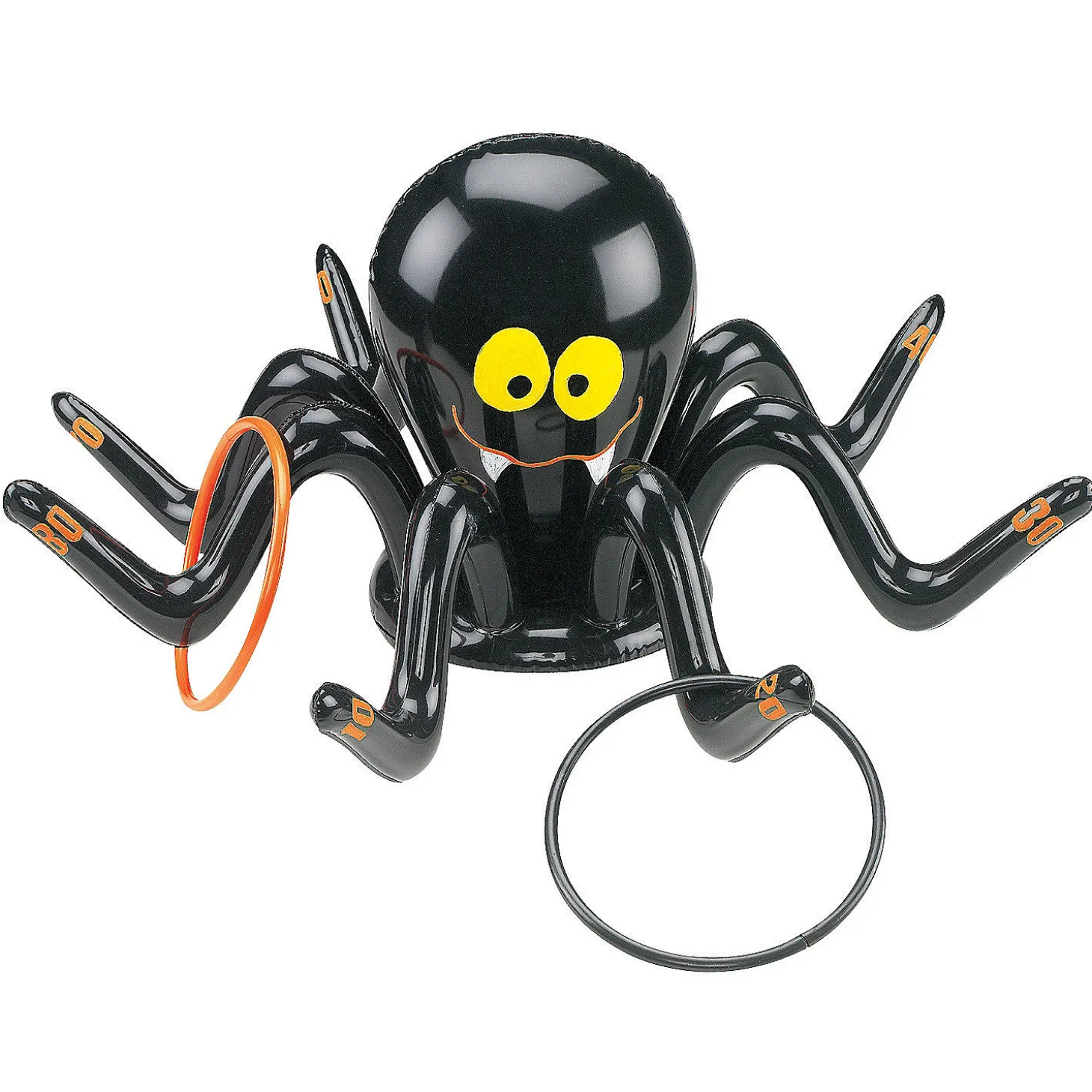 This Creepy Cobweb Crawler Will Add Some Frightful Fun To A Kid’s Haunted House Party !Inflatable Spider Ring Toss Game Is Also Ideal For A Halloween School Carnival, This 2 Ft. Inflatable Vinyl Spider Comes With Four 6 1/2″ Orange And Black Plastic Rings.