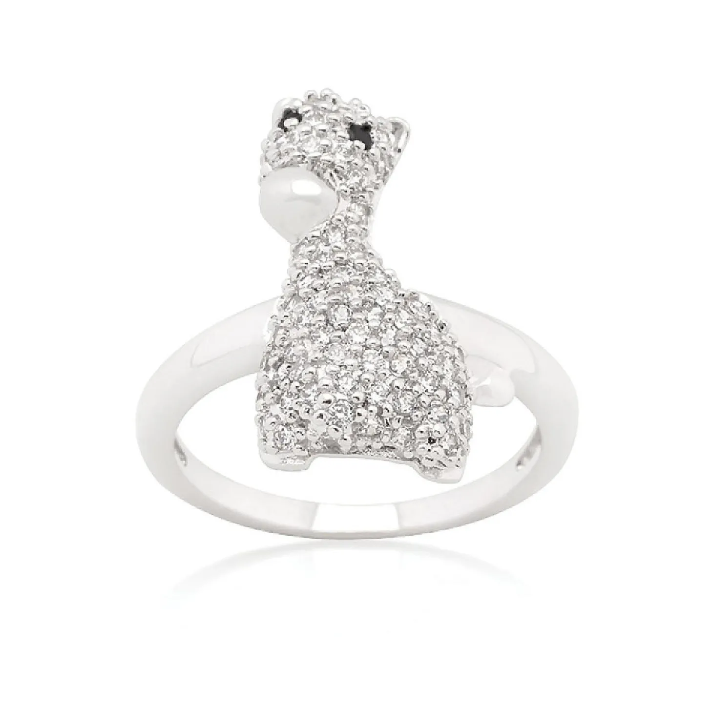 Genuine Rhodium Plated Giraffe Ring With Clear Cubic Zirconia And Jet Black Cubic Zirconia Eyes In Pave Setting Polished Into A Lustrous Silvertone Finish. This Statement Animal Ring Features An Adorable Giraffe With Cubic Zirconia Encrusted Accents. Our Genuine Rhodium Finish Is Achieved Using An Electroplating Process That Coats The Item With Heavy Layers Of Rhodium A Close Cousin Of Platinum That Costs Three Times As Much Which Gives Our Jewelry A Platinum Luster.Plating Color: Silvertone Finish. Materials: Cubic Zirconia.Base Material: Lead Free Alloy (Brass). Carat Weight: 2.8 (Ct).Stone Cut: Round. Ring Band Width: 7 (Mm)Stone Size: 1 Mmx 1 Mm , Color: Black, Clear.