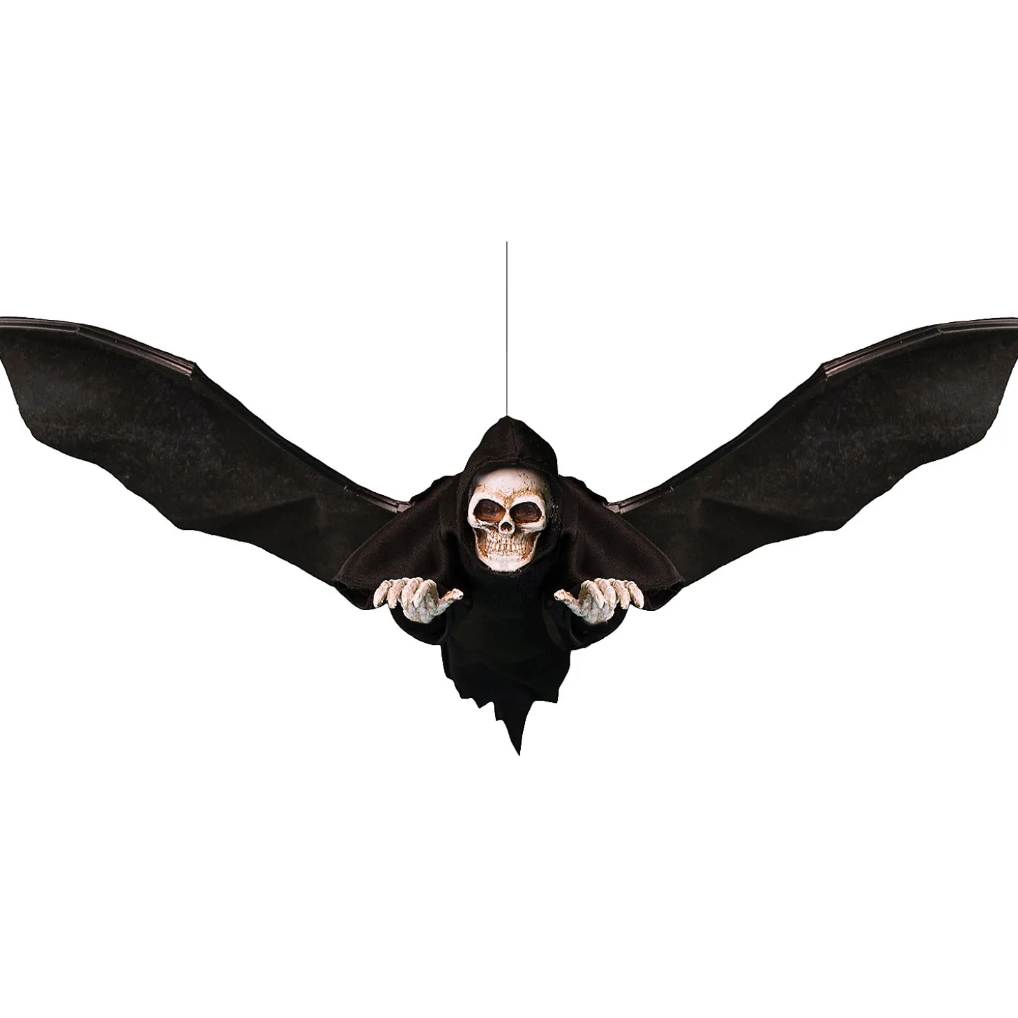 A Great Addition To Your Home Halloween Decor! Need Something To Set Off Your Halloween Event And Make It Special? This Grim Reaper Will Soar Around Your House Scaring Your Guests, Making For A Perfect Effect. Requires 2 Aa Batteries Not Included. Features Circular Flight Paths And Realistic Moving Wings.Dimensions: 17.13 X 8.27 X 2.76.