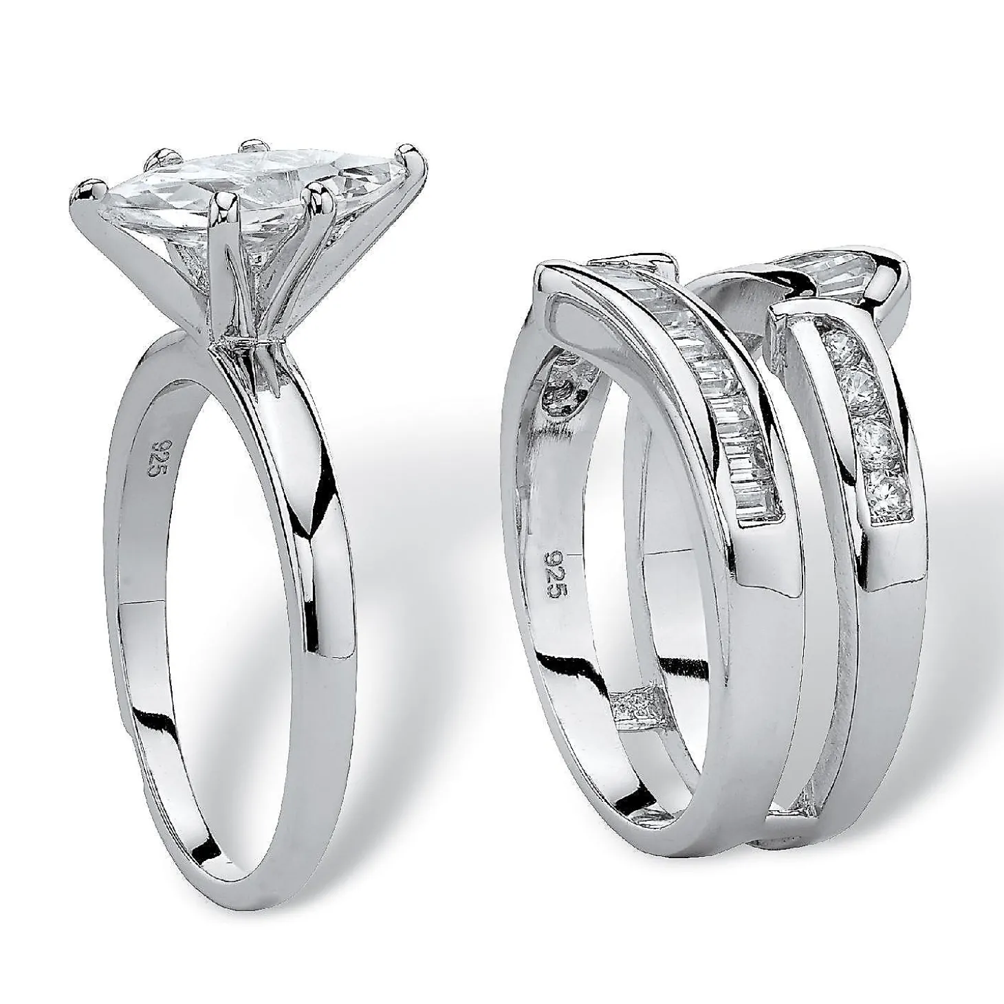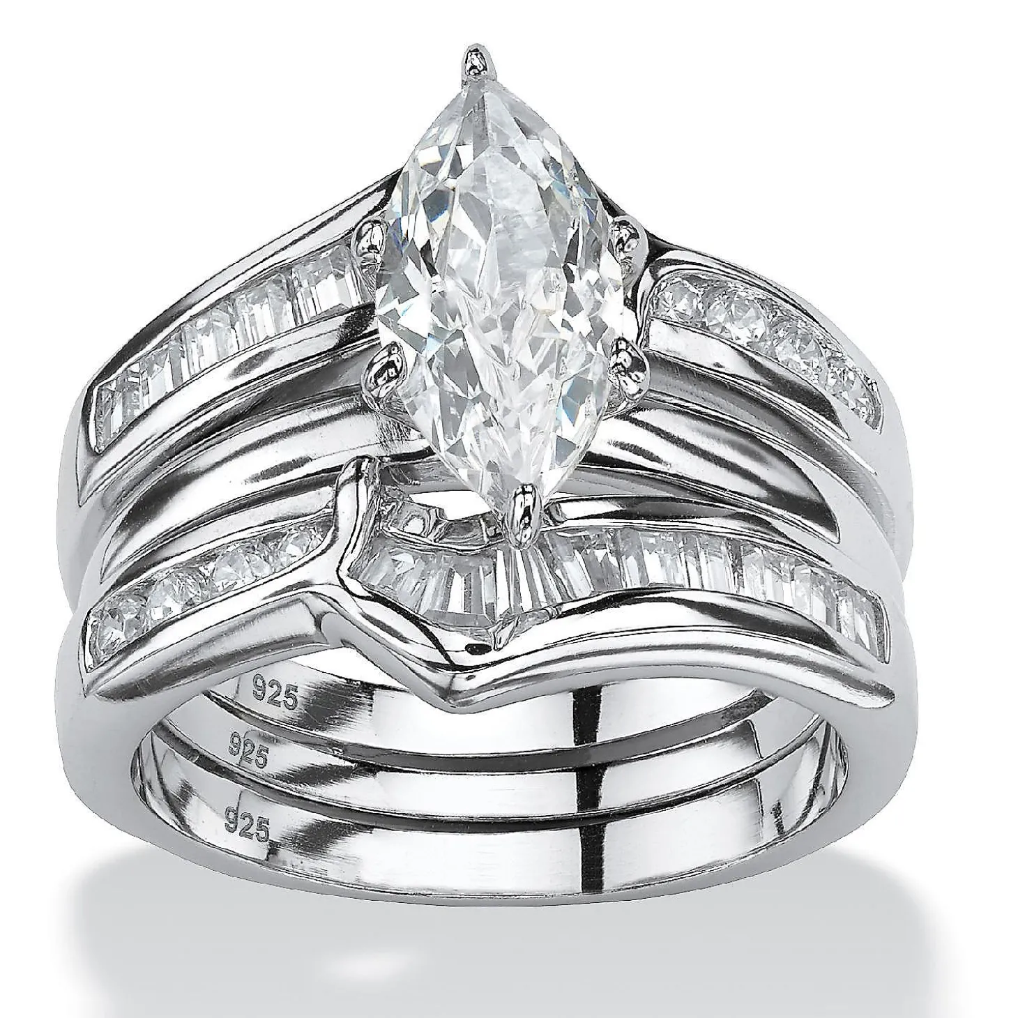 Palmbeach Jewelry Exclusive. Contemporary Marquise-Cut Cubic Zirconia Two-Piece Wedding Ring Set Features A Polished Elegance And Cz Accents For 3.57 Carats T.W. Of Fabulous Sparkle. Sterling Silver. Sizes 6-10.