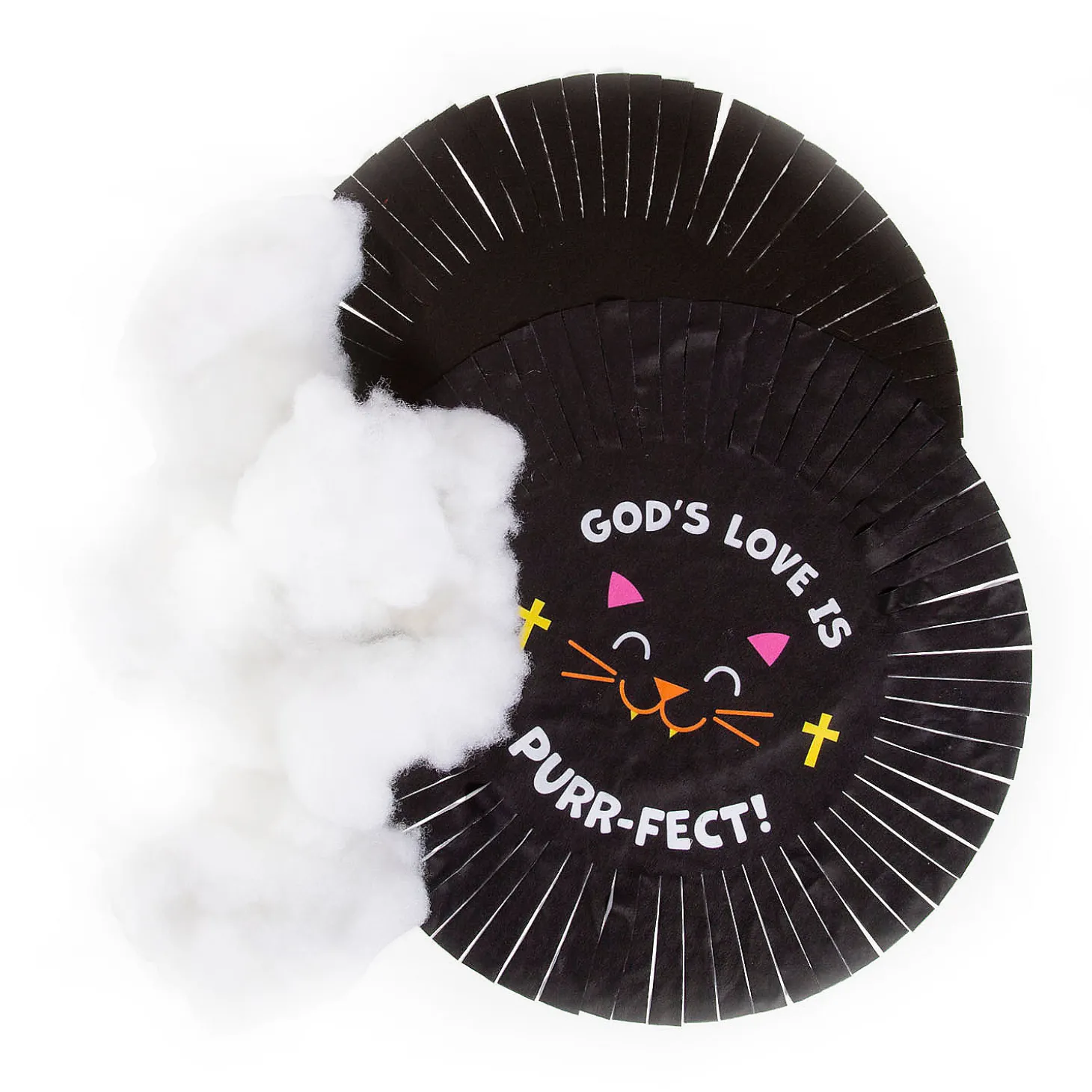 This Craft Kit Celebrates God’s Love With A Halloween Theme. This Tied Pillow Is The Purr-Fect Addition To Party Supplies For A Sunday School Halloween Celebration. Kids Will Enjoy Assembling This Adorable Black Cat Pillow And Then Taking It Home To Display With Their Family’s Other Halloween Decorations. Includes Pre-Cut Fleece Fringe And Polyester Fiberfill Stuffing. 18-1/4″ Makes 6. All Craft Kit Pieces Are Pre-Packaged For Individual Use. Kits Include Instructions. © Otc