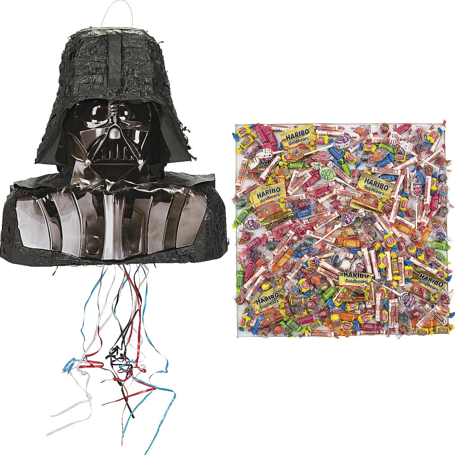 Kids Can Ban Together To Defeat The Dark Lord Of The Sith Once And For All With This Awesome Darth Vader Pinata Kit! Featuring The Main Baddie Himself And A Ton Of Sweet Treats To Stuff Him With, This Convenient Kit Requires Minimal Setup To Create A Memorable Activity At The Next Birthday Party Or Star Wars Movie Night Event. Everyone Can Take Turns Pulling The Strings To Find Which One Will Unleash The Cascade Of Candy! (207 Pcs. Per Unit) © & ™ Lucasfilm Ltd.Includes:• 1 Papier-Mache 3D Darth Vader Pull-String Pinata (Includes 4″ Hanger. 17″ X 18″)• 206-Pc. Kid’s Combo Assorted Candy (Includes Atomic Fireball®, Rainblo Pops®, Sweettarts®, Double Bubble® Bubble Gum, Smarties®, Now And Later® And More. Individually Wrapped. Dairy-Free. Fat-Free. Gluten-Free. Nut-Free. Total Wt., 3 Lbs. 8 Oz.) • Candy Is Non-Returnable. For More Information, Visit Our “Return Policy” Page Located On Our Website.• Made In The Usa. Important Country Of Origin Information: For Certain Items Sold By Otc On Our Web Or Mobile Sites, Country Of Origin Information Can Change And What Is Displayed May Not Be Accurate Or Consistent With Manufacturer Information. For Up-To-Date Country Of Origin Information, It Is Recommended That You Rely On Product Packaging Or Other Manufacturer Information.• Ingredient, Nutrition, Allergen And Other Product Information Are Provided On Our Web And Mobile Sites For Reference Purpose Only, Without Warranty Or Representation As To Accuracy. Manufacturers Adjust Their Labeling Regularly And Are Solely Responsible For The Accuracy Of The Information. For General Questions Concerning These Items, Please Contact Our Customer Service At 800-228-0475.• Assortments Are Subject To Change At Any Time And May Vary From Picture Shown. Substituted Items Will Be Similar In Nature.