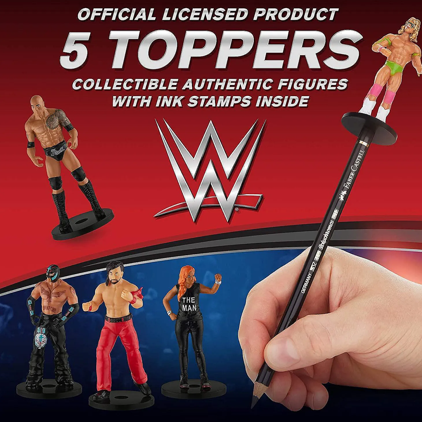 Wwe Pencil Toppers 5Pk Nakamura Mysterio Rock Becky Lynch Ultimate Warrior Warrior Pmi International