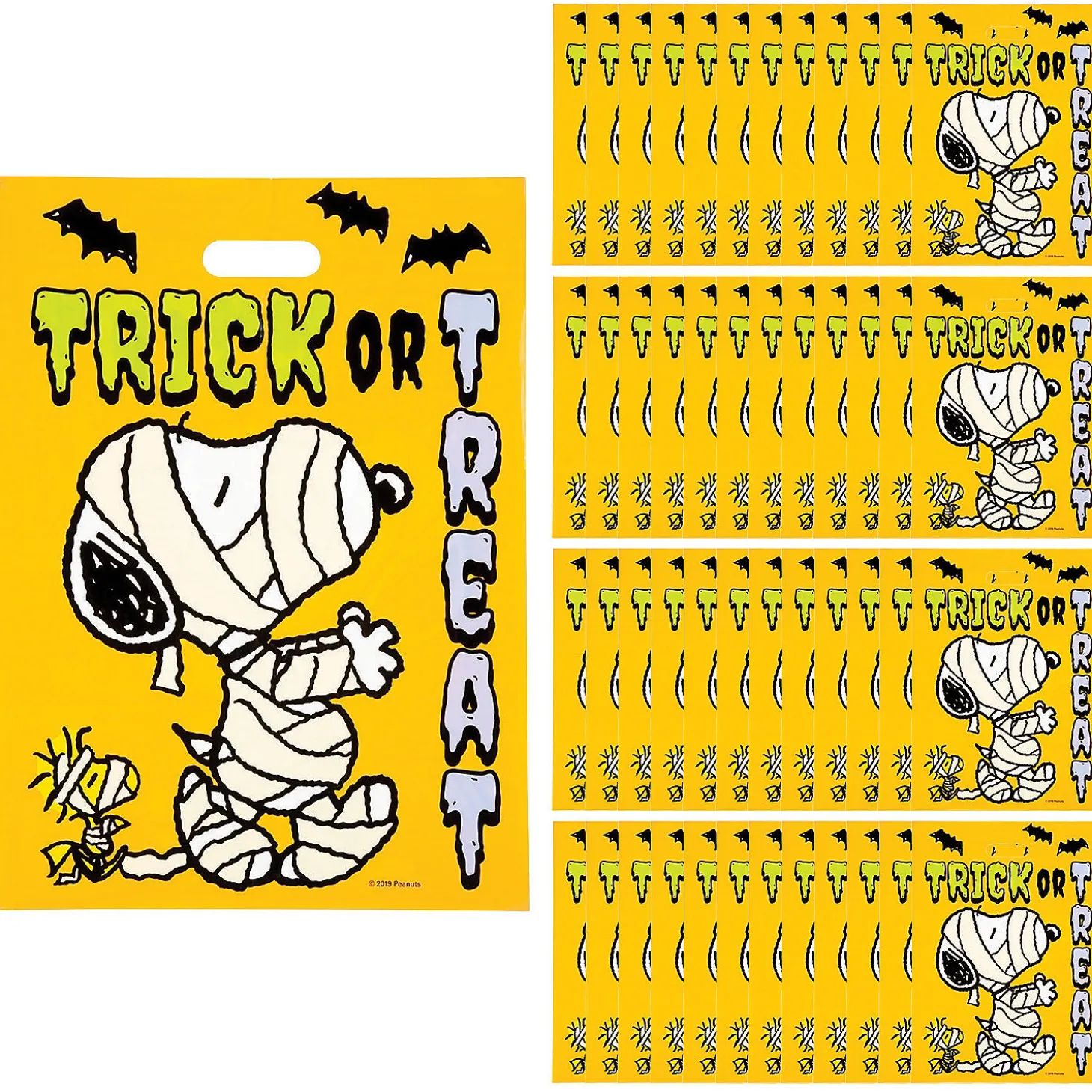 • Perfect Size For Trick-Or-Treaters: These Treat Bags Are Just The Right Size For Hauling Around The Neighborhood To Collect Candy. They Have Lots Of Room To Carry All Of Your Treats And Goodies.• Spooky Style: These Bags Feature Spookified Designs Which Are Sure To Fit Right In With All Of The Halloween Fun And Decorations.• Say Thanks With Sweets: You Can Load These Bags Up With Candy And Party Favors To Hand Out At Your Next Costume Party Or Event. Your Guests Will Love The Thoughtful Gesture!Product Description:Celebrate Halloween With The Peanuts