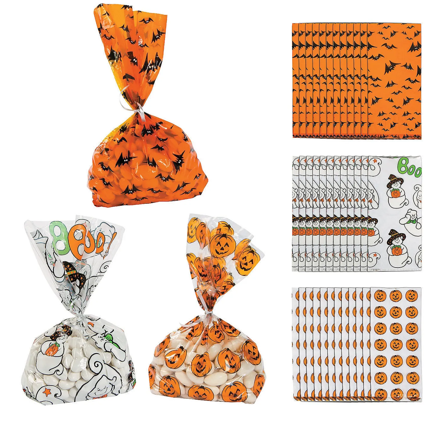 • Sweet Style: Display Your Delicious Delights Or Party Favors In Style With These Fun Bags! You Can Make A Decorative Statement At Any Event With These Bags, A Few Treats And Some Stylish Twist Ties.• Say Thanks With Sweets: Are You Looking For An Easy Way To Thank The People In Your Life? These Multipurpose Bags Filled With Great Snacks Are A Sweet Way To Spread Appreciation Among Party Guests, Students And Teachers, Or Employees.• Perfect Size For Parties: These Treat Bags Are Just The Right Size For Candies. Fill Them Up With Tasty Treats And Hand Them Out As Party Favors At Your Next Birthday Party, Holiday Gathering Or Wedding Reception!Product Description:Fill Fright Night With Sweets Quickly And Easily Using These Goody Bags! They’Re Ideal For Halloween Cookies Or Candy, And Trick-Or-Treating Kiddies And Party Guests Love Them. This Festive Assortment Features Pumpkin, Bat And Spider Prints; Favor Bags Are A Halloween Party Essential, So Grab Yours Today! Curling Ribbon Sold Separately. © Otcsize: 5″ X11″Quantity: 36Material: Cellophane.
