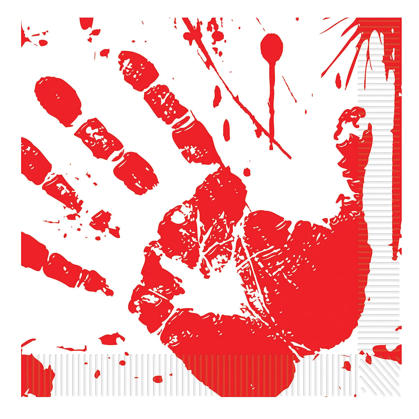 Bloody Handprints Lunch Napkins. Just What You Need For A Halloween Party! Includes: 16 2-Ply Paper Luncheon Napkins. White With Red Hand Print Design And Blood Splatters. Each Napkin Measures 6 1/2″ X 6 1/2″.