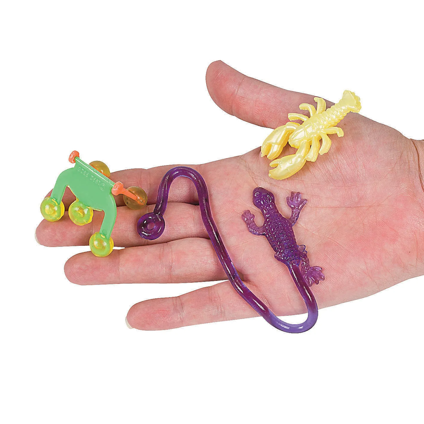 Awesome Party Favors: This Huge Bulk Toy Assortment Makes Quick Work Of Party Favors, Door Prizes Or Classroom Rewards.What’s Included: This Bulk Set Includes 100 Assorted Sticky Toys.Great For Kids: These Soft, Squishy, And Sticky Toys Are Recommended For Children Over The Age Of 3.Home & Travel: These Sticky Toys Are Great For On-The-Go Play That Keeps Kids Busy And Entertained No Matter Where They Are.Don’T Get Stuck Without Party Favors! Get The Sticky Assortment And Make Sure Your Guests Or Students Are Happy And Having Fun. These Soft, Gooey And Stretchy Toys Provide Hours Of Safe Fun For School-Aged Boys And Girls And Grown-Ups, Too! Hand Them Out As Classroom Regards For Good Behavior Or To Celebrate Special Occasions.Specs: Size: Varies, 3/4″ – 3 1/4″, Quantity: 100, Material: Plastic, Brand: © Otc – Oriental Trading Company