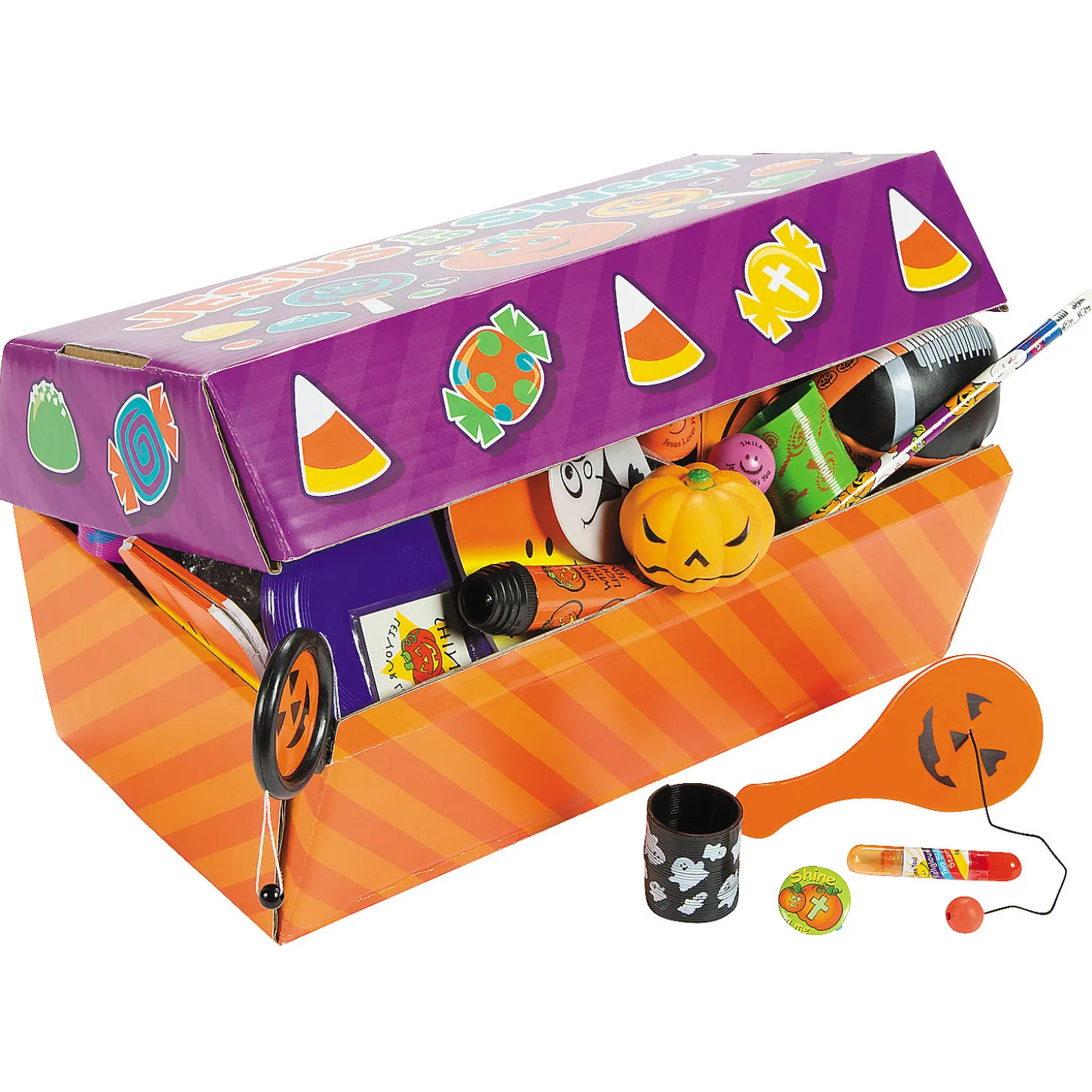 Everything You Need For Your Church’s Halloween Party In One Convenient Assortment! This Trove Of Trunk-Or-Treat Treasures Includes An Variety Of Kids’ Toys, Favors And Activities. Youngsters Of All Ages Will Have Hours Of Wholesome Fun Playing With And Trading This Seasonal And Spiritual Selection. Cardboard. (100 Pcs. Per Unit) 12″ X 6″ X 7 1/2″ © Otc• Assortments Are Subject To Change At Any Time And May Vary From Picture Shown. Substituted Items Will Be Similar In Nature.