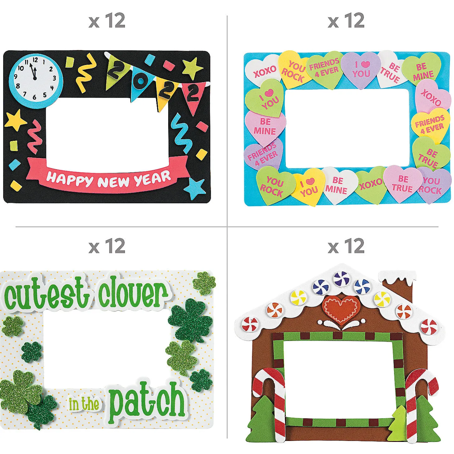 This Craft Kit Puts Together All The Pieces You Need To Create 12 Foam Picture Frames For Multiple Holidays. This Convenient Kit Is The Perfect Crafting Solution For Daycares, Homeschool Groups, Classrooms, After School Programs, Scout Troops Or Holiday Event Craft Stations. Includes Self-Adhesive Foam Pieces. (84 Pcs. Per Unit) Makes 84. All Craft Kit Pieces Are Pre-Packaged For Individual Use. Magnets Are Packaged Separately. Do Not Discard. Kits Include Instructions.Includes:• 12 Patriotic Picture Frame Magnet Craft Kits (Includes Foam Pieces. 7″ X 5 1/2″ With A 4 1/4″ X 2 3/4″ Photo Space.)• 12 Foam Clover Patch Picture Frame Magnet Craft Kits (6 3/4″ X 5″ With A 4″ X 2 1/2″ Photo Space.)• 12 Foam Conversation Heart Frame Craft Kits (Includes Self-Adhesive Foam Pieces. 6 1/2″ X 4 3/4″ With A 4″ X 2 1/2″ Photo Space.)• 12 Foam Dated New Year’s Picture Frame Magnet Craft Kits (6 3/4″ X 5″ With A 4″ X 2 1/2″ Photo Space.)• 12 Foam Easter Dated Picture Frame Magnet Craft Kits (7″ X 6″ With 3 1/2″ X 2 3/4″ Photo Space.)• 12 Foam Pumpkin Patch Picture Frame Magnet Craft Kits (6 1/2″ With A 2 3/4″ X 4 1/2″ Photo Space.)• 12 Foam Dated Snowman Picture Frame Magnet Craft Kits (Includes Self-Adhesive Foam Pieces. 8 1/2″ X 6 1/4″ With A 4 1/4″ X 2 3/4″ Photo Space.)• Assortments Are Subject To Change At Any Time And May Vary From Picture Shown. Substituted Items Will Be Similar In Nature.