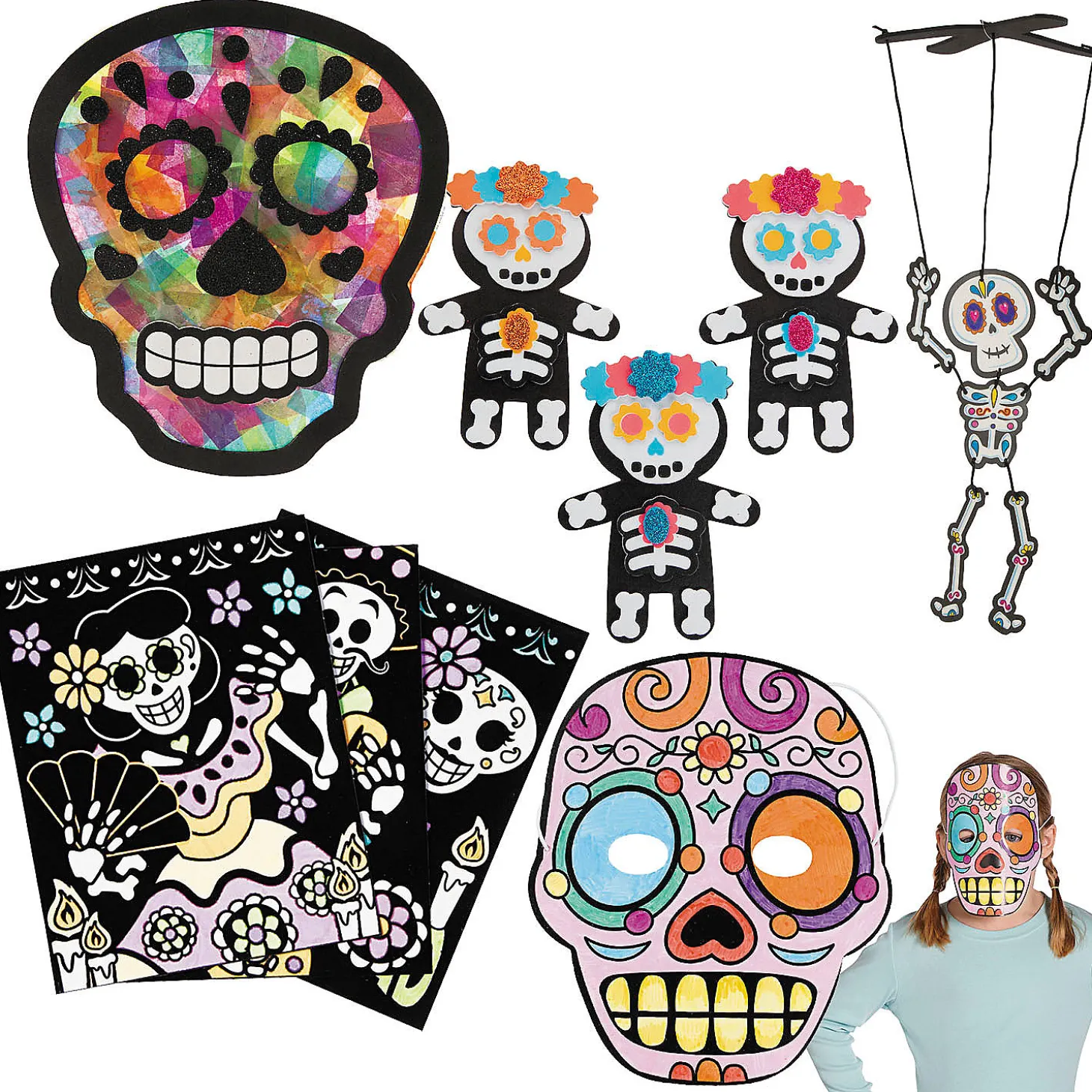 Celebrate The Day Of The Dead With A Bunch Of Fun And Simple Crafts That Kids Will Love! This Fun Kit Provides A Variety Of Day Of The Dead Craft Kits For A Large Group – Or Use This Kit As An Assortment Of Crafts For A Kids’ Activity Table At A Day Of The Dead Celebration. Kids Will Enjoy Putting These Fun Crafts Together! Makes 60. Assortment May Vary. All Craft Kit Pieces Are Pre-Packaged For Individual Use. Kits Include Instructions.Includes:• 12 Paper Color Your Own Day Of The Dead Masks (Each With An Elastic Band. 7″ X 8 1/4″)• 12 Paper Color Your Own Fuzzy Day Of The Dead Posters (8 1/2″ X 11″)• 12 Sugar Skull Tissue Paper Sign Craft Kits (Includes Self-Adhesive Foam Pieces, Acetate Sheets And Satin Cording. 8 1/4″ X 9 1/2″)• 12 Day Of The Dead Magnet Craft Kits (Includes Self-Adhesive Foam Pieces. 3″ X 4 1/4″)• 12 Cardstock Jumbo Day Of The Dead Skeleton Puppet Craft Kits (Includes Foam Pieces And Satin Cording. 8 1/4″ X 6″) • Assortments Are Subject To Change At Any Time And May Vary From Picture Shown. Substituted Items Will Be Similar In Nature.