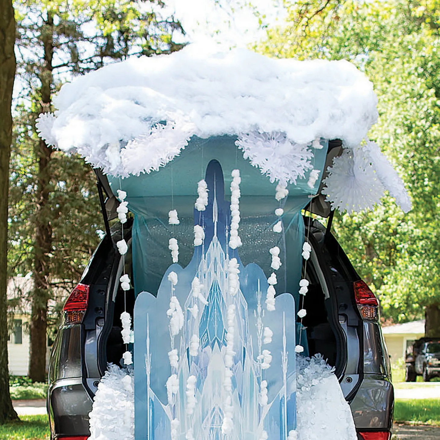 Your Trunk-Or-Treat Event May Be In The Fall, But Your Display Will Be Giving Off Major Winter Vibes With This Frozen Decorating Kit. Covert Your Car Into Elsa’s Icy Castle With A Stand-Up Decoration And Then Create The Look Of Snow With The Included Tablecloths And Fabric. To Complete The Frozen Trunk-Or-Treat Theme, Dress Up In Anna And Elsa Costumes Found Here On Our Website! (146 Pcs. Per Unit) Stand-Ups Are One-Sided With A Brown Cardboard Back. Simple Assembly Required. © Disneyincludes:• 1 Disney’s Frozen Ice Castle Cardboard Stand-Up (29″ X 6 Ft.)• 1 Vinyl White Floral Sheeting Backdrop (3 Ft. X 15 Ft.)• 12 Tissue Snowflakes (15″)• 12 Silver Balloon Weights (5 1/2″)• 2 Large Silver Tin Pails (5 3/4″ X 6 3/4″ With A 4 1/2″ Riveted Metal And Wood Handle)• 1 Light Blue Plastic Tablecloth Roll (40″ X 100 Ft.)• 1 Silver Glitter Polyester Fabric Roll (30″ X 30 Ft. Imported.)• 15 Vinyl Snowflake Floor Decals (2 1/2″ – 13 3/4″)• 100 White Tinsel Pom-Poms (3/4″ – 1″ Diam.)• 1 Plastic Clear Stretchy Cording Roll (.7Mm X 82 Ft.)