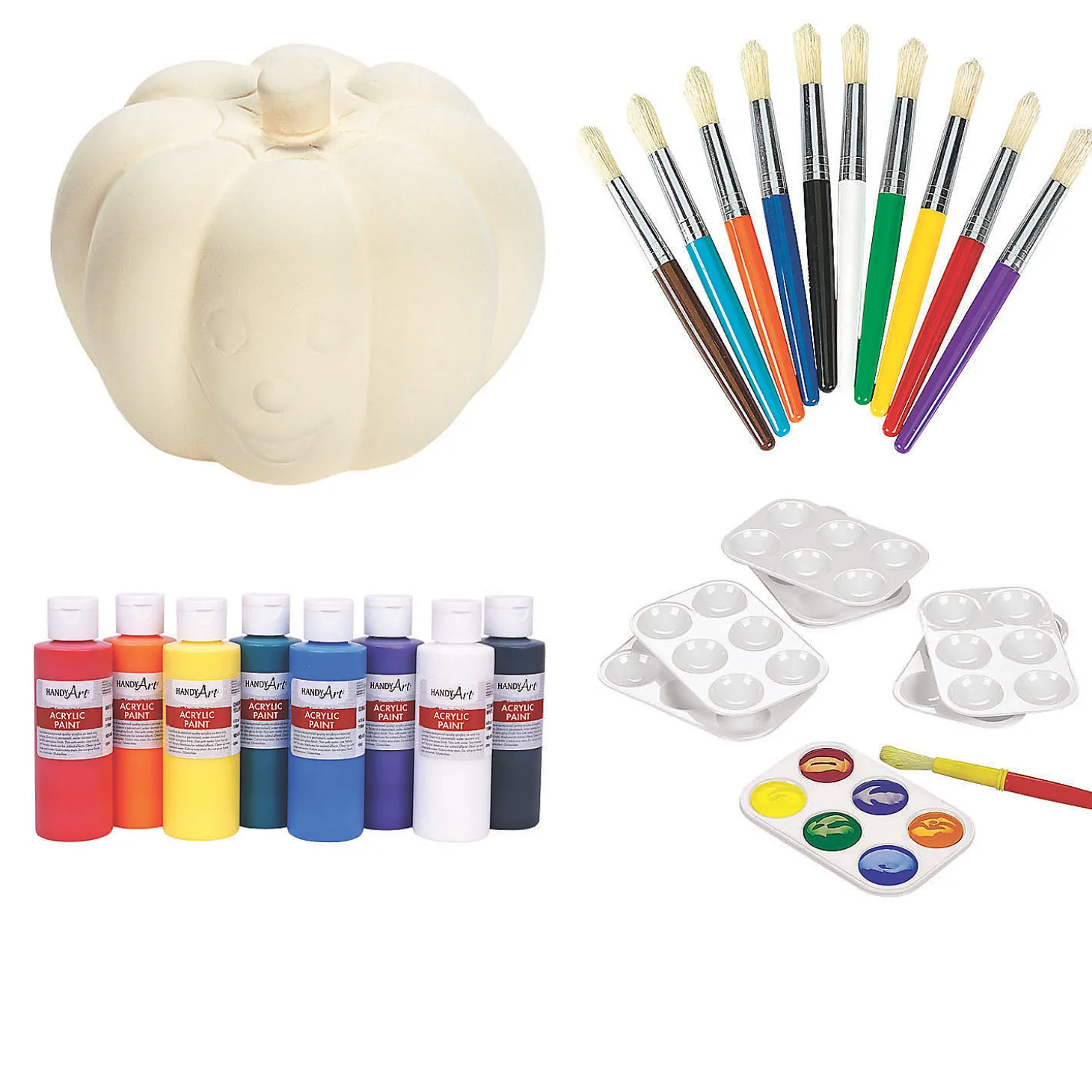 This Fun Kit Has Everything You Need For A Fun And Crafty Afternoon At Home Making Your Own Halloween Decor. Paint These Cute Ceramic Pumpkins Whatever Color You’D Like Using The Included Paint, Brushes And Palettes. Allow Creativity To Flow And Create Some Unique Halloween Decorations For Display Or To Give As Gifts. This Kit Is Great For Classrooms Or At Home, Especially During The Fall Season. (42 Pcs. Per Unit) Assortment May Vary.Includes:• 1 8-Color Acrylic Paint Set – 4 Oz. (Safe And Non-Toxic. 8 Basic Primary Colors: Red, Orange, Yellow, Green, Blue, Purple, Black, White. Conforms To Astm D-4236.)• 12 Diy Ceramic Mini Pumpkins (3″ X 3 1/2″)• 10 Plastic Jumbo Colorful Chubby Paintbrushes (7 1/2″)• 12 Plastic Rectangular Paint Palettes (Holds Up To 6 Colors In 1/2″ Deep Wells. Stacks For Storage. 5 1/4″ X 3 3/4″)