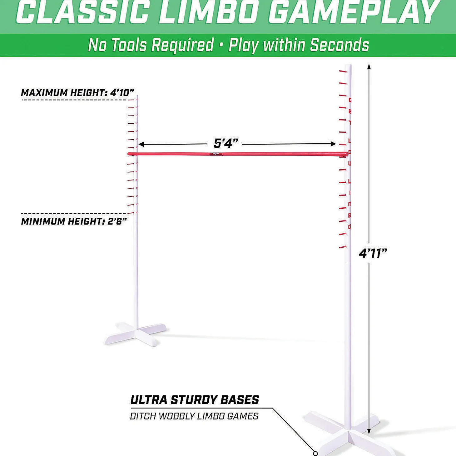 Gosports Get Low Limbo Premium Wooden Limbo Game, Sets Up In Seconds – Fun For Kids & Adults, White, Red