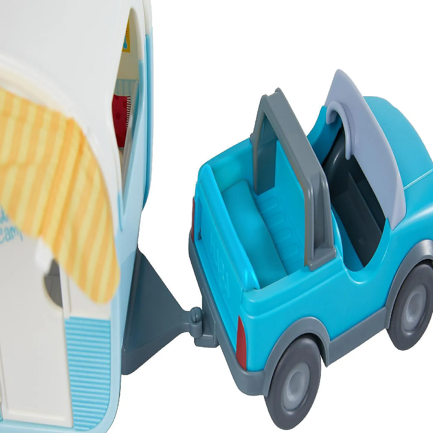 Haba Little Friends Vacation Camper Play Set With All Terrain Push & Go Vehicle, 2 Lawn Chairs And 4″ Bendy Boy