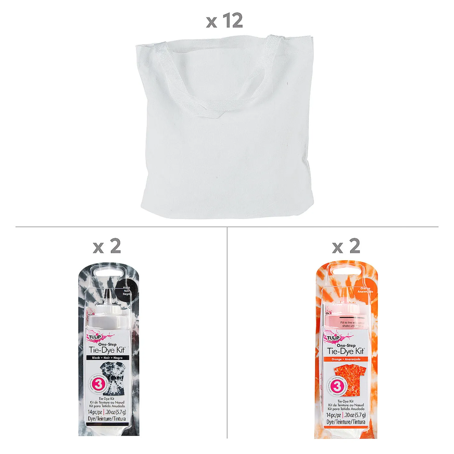 Prepare For Halloween With This Fun Tie-Dye Kit That Helps Kids Create Their Own Unique Treat Bags With A Cool Tie-Dye Look. Carrying Their Unique Bags On Halloween Night To Fill Them With Candy Will Be Almost As Much Fun For Kids As Creating The Bags Themselves! A Fun Halloween Party Kids’ Activity, This Tie-Dye Bag Kit Makes Up To A Dozen Bags. (16 Pcs. Per Unit) Assortment May Vary.Includes:• 2 Tulip® One-Step Tie-Dye Kits®- Black (Includes Squeeze Bottle, Dye Packets, Project Gloves, Rubber Bands And Project Guide. 7 1/2″ Safe And Non-Toxic. Conforms To Astm D-4236.)• 2 Tulip® One-Step Tie-Dye Kits®