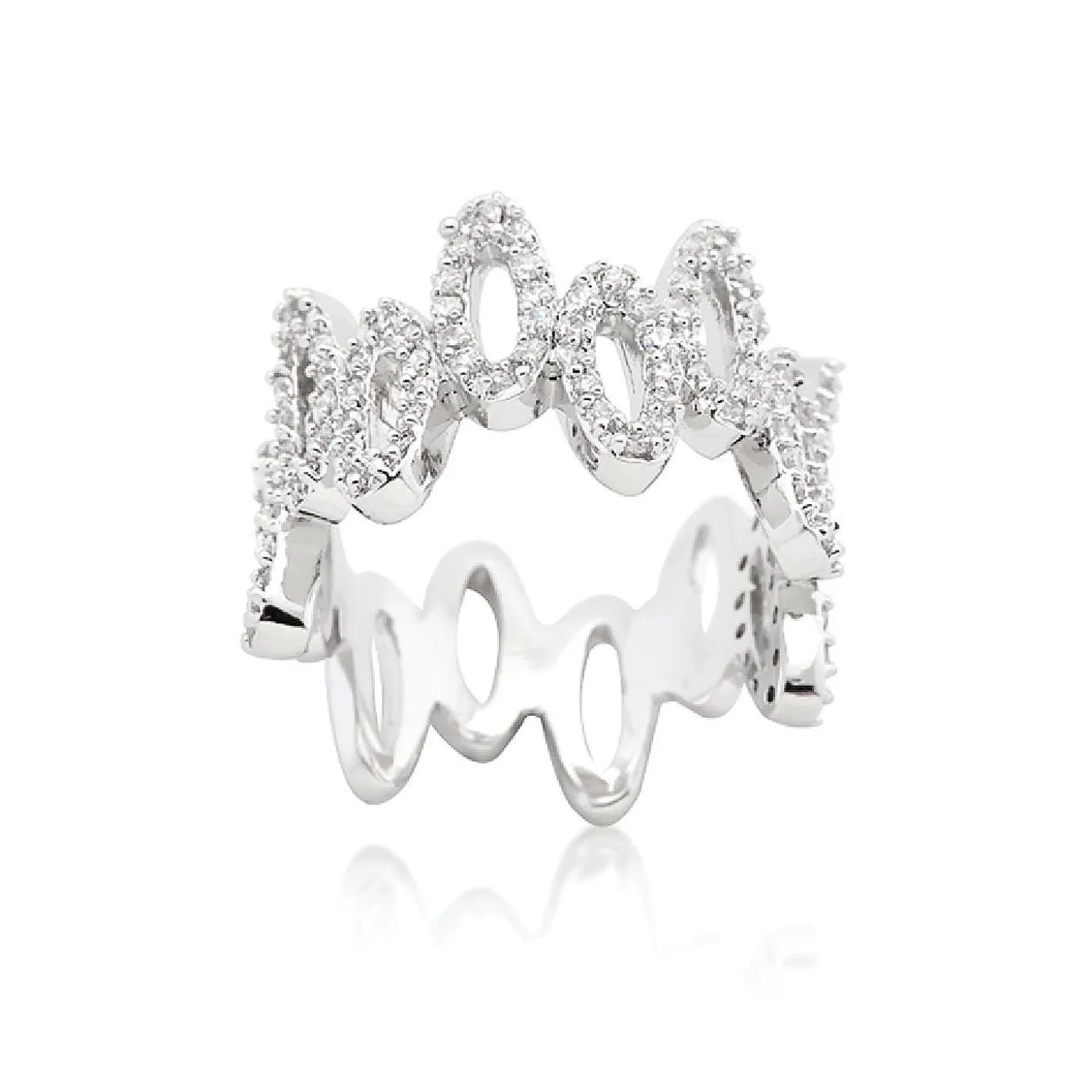 Genuine Rhodium Plated Fashion Ring Featuring Pave Round Cut Clear Cubic Zirconia In An Oval Design Polished Into A Lustrous Silvertone Finish. Sparkling Stones Set In A Row Of Oval Shapes Come Together To Form This Ring’s Cool Faded Design. Our Genuine Rhodium Finish Is Achieved Using An Electroplating Process That Coats The Item With Heavy Layers Of Rhodium A Close Cousin Of Platinum That Costs Three Times As Much Which Gives Our Jewelry A Platinum Luster.Plating Color: Silvertone Finish. Materials: Cubic Zirconia.Base Material: Lead Free Alloy (Brass). Carat Weight: 10.1 (Ct).Stone Cut: Round. Ring Band Width: 13.3 (Mm)Size: 13.5 (Mm) X 4.5 (Mm) X 2.5 (Mm), Color: Clear.Stone Size: 1.5 Mmx 1.5 Mm