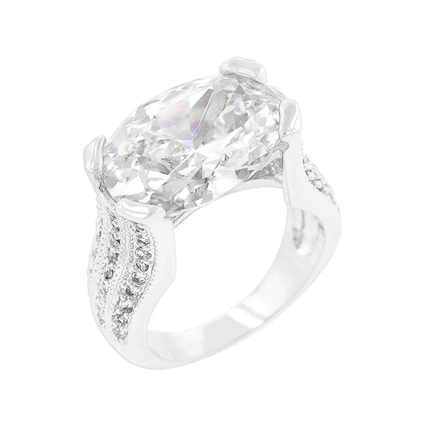 Genuine Rhodium Plated Triple Set Ring With Clear Oval And Round Cut Cubic Zirconia Polished Into A Lustrous Silvertone Finish. Craftsmanship And Quality Are At The Forefront Of This Design So If You’Re Shopping For The Perfect Look Shop No More. Buy This Ring And Give Your Fashion Style A Glamorous Personal Twist! Our Genuine Rhodium Finish Is Achieved Using An Electroplating Process That Coats The Item With Heavy Layers Of Rhodium A Close Cousin Of Platinum That Costs Three Times As Much Which Gives Our Jewelry A Platinum Luster.Plating Color: Silvertone Finish. Materials: Cubic Zirconia.Base Material: Lead Free Alloy (Brass). Carat Weight: 22.5 (Ct).Stone Cut: Oval, Round. Ring Band Width: 2.7 (Mm)Size: 7 (Mm) X 23 (Mm) X 2.7 (Mm), Color: Clear.Stone Size: 16 Mmx 12 Mm, 2 Mmx 2 Mm