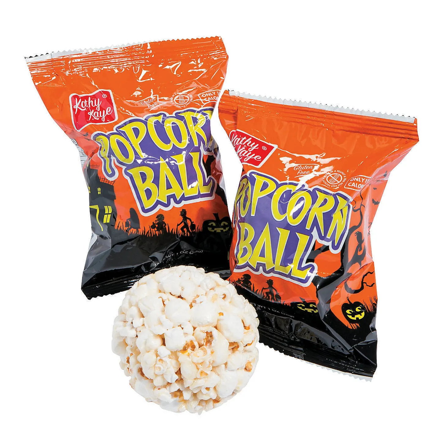 • Scary Snack Attack: Fill Up Your Halloween Treat Bowls With Our Delicious Candy Or Treat Options, Delighting Trick-Or-Treaters And Party Guests With A Tempting Assortment Of Sugary Goodness.• Goody Bag Fillers: Add A Sweet Surprise To Your Halloween Party Goody Bags By Stuffing Them With Pieces Of Candy Or Other Edible Goodies, Ensuring That Each Guest Leaves With A Delightful Treat To Enjoy Later.• Game Prizes: Make Your Halloween Party Even More Exciting By Offering Candy And Other Treats As Prizes For Thrilling Games Such As A Candy Scavenger Hunt Or A Ghoulish Guessing Game.Product Description:Sweet, Salty And Spooktacular! Sure To Be A Monster Hit When Added To Halloween Party Snacks, These Popcorn Balls Come Packaged In An Orange And Black Wrapper That Features A Haunted House. Stock Up On These Tasty Treats To Hand ‘Em Out To Trick-Or-Treaters In Lieu Of Sugary Candy Or Round Out The Ghoulish Goodies Being Offered To Guests At A Halloween Haunt. Just Be Sure To Keep Some Popcorn Balls For You To Snack On In Your Own Crypt With Your Crew! Edibles Are Non-Returnable. For More Information, Visit Our “Return Policy” Page Located On Our Website. © Kathy Kaye Foodssize: 3″ Total Wt., 1 Lb.Quantity: 18