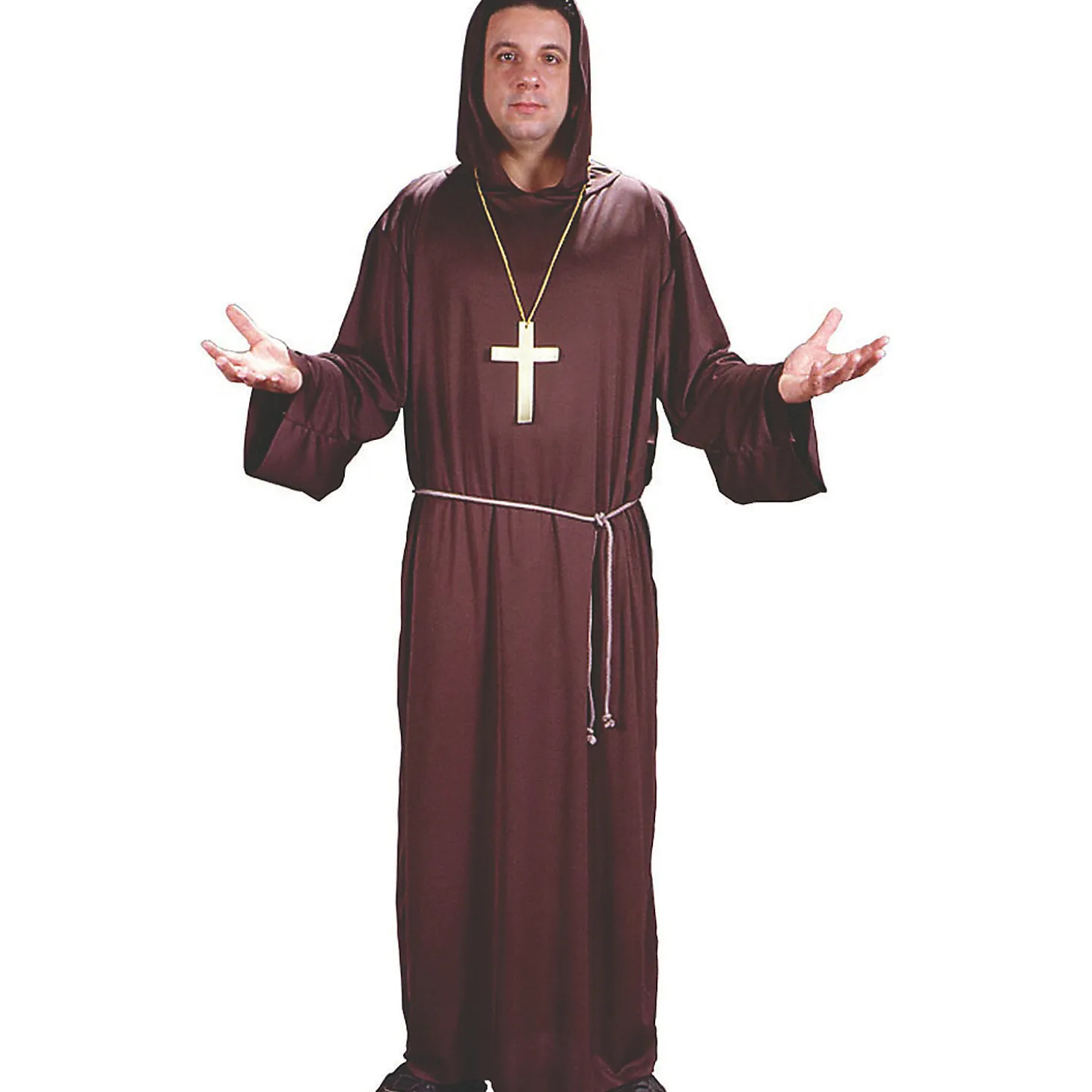 Choose This Fun Monk’s Robe Adult Men’s Costume And Be Ready To Trick-Or-Treat, Enter A Costume Contest Or Be The Hit Of The Halloween Party! Wear This Costume To A Masquerade Ball Or As The Perfect Disguise At A Haunted House. This Outfit Is Sure To Win You The “Best Costume” Award At Any Halloween Costume Party! Cross And Sandals Not Included. Polyester. One Size Fits Most, Up To 5’11, 200 Lbs.