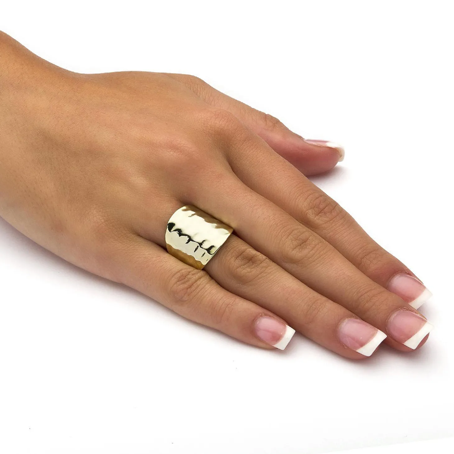 Palmbeach Jewelry Exclusive. Subtly Textured Ring Crafted With A Hammered Look In 14K Gold-Plated Sterling Silver. Specially Designed To Go With Today’s Super-Sleek Fashions. Sizes 5-10. We Recommend Ordering One Size Up For This Style.