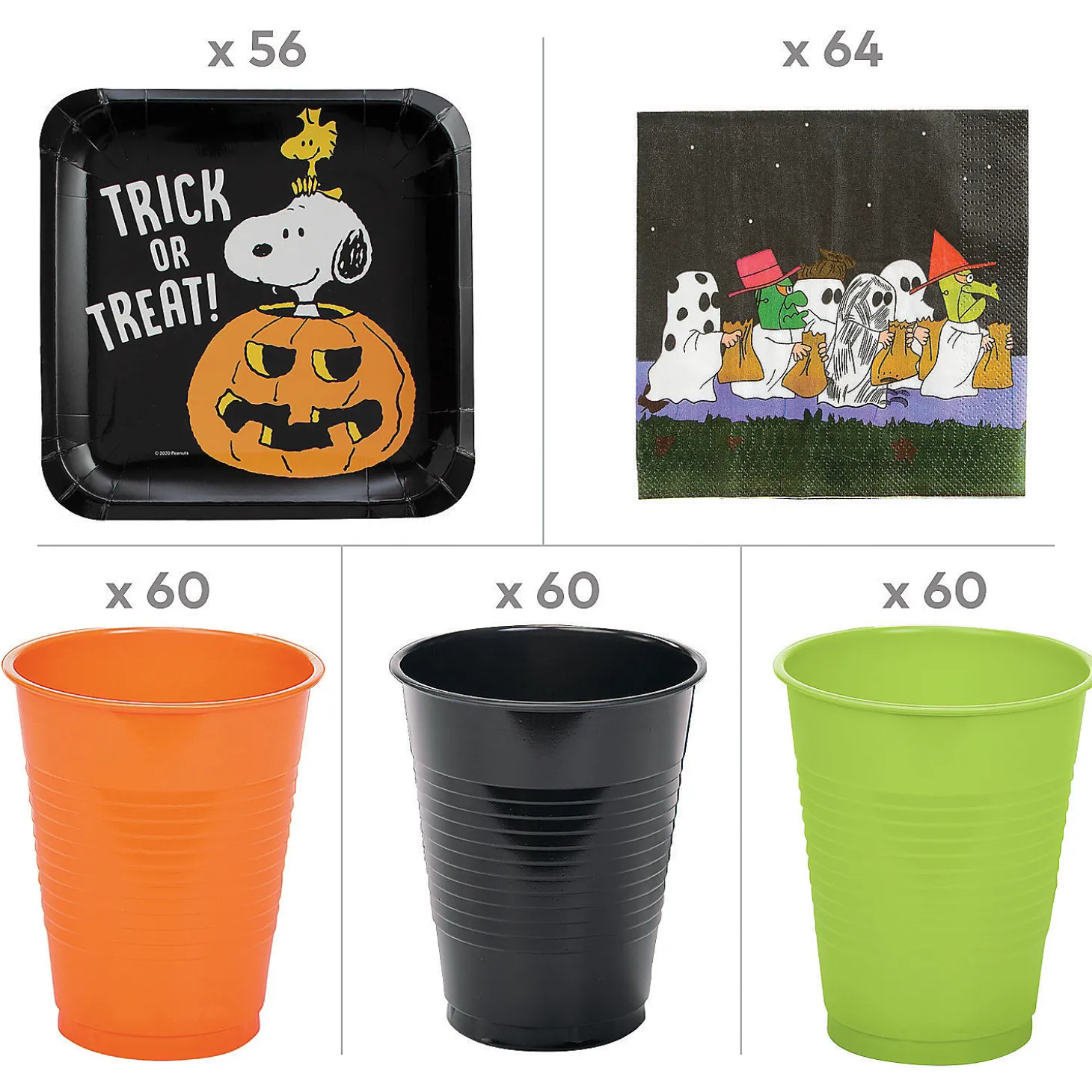 Celebrate Halloween With The Peanuts® Gang With Help From This Impressive Kit Full Of Disposable Tableware. Featuring Napkins, Plates And So Many Cups You Can Use Some For Handing Out Treats, This Kit Is The Easiest Way To Gather The Disposable Tableware Needed For A Party Of Up To 50 Guests! (300 Pcs. Per Unit) Assortment May Vary. Only At Otc / © 2021 Peanuts Worldwide Llcincludes:• 60 Paper Black Cups (4 3/4″ 16 Oz.)• 60 Paper Lime Green Cups (4 3/4″ 16 Oz.)• 60 Paper Orange Cups (4 3/4″ 16 Oz.)• 64 Paper Peanuts® Halloween Luncheon Napkins (6 1/2″)• 56 Paper Peanuts