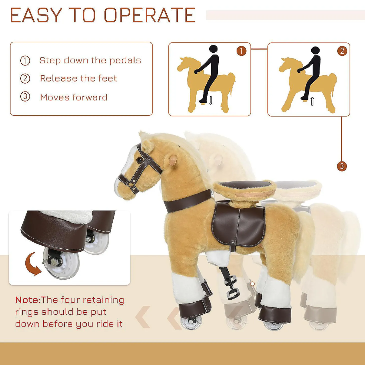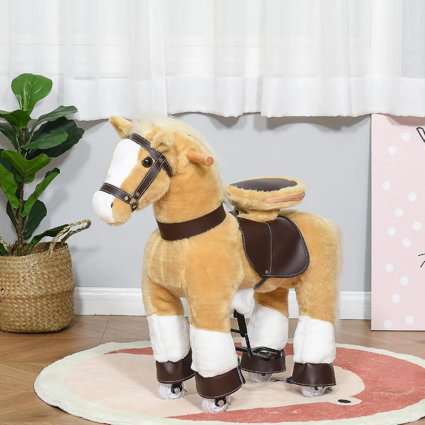 Qaba Ride On Walking Rolling Kids Horse With Easy Rolling Wheels Soft Huggable Body And A Large Size For Kids 3 8 Years
