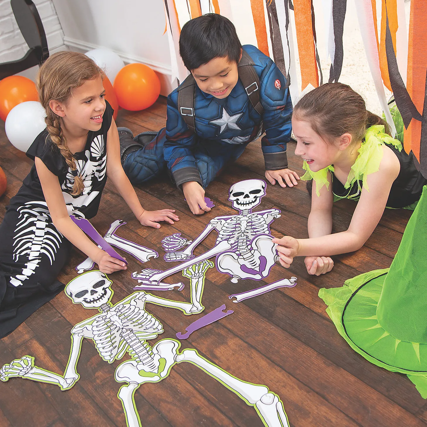 Whatta Bonehead! Your Boney Buddy Seems To Be Missing Some Pieces. Can You Help Him Out? A Scary Fun Twist On Halloween Party Games, This Scavenger Hunt Comes With Two Skeleton-Shaped Puzzles. Hide All The Pieces, Then Divide Into Two Groups And Assign Each One A Color—Purple Or Green. Set Off To Find All The Pieces Then Race To See Who Can Assemble Their Skeleton Friend First! Cardboard. (2 Puzzles Per Set) Assembled Puzzles, 24 1/4″ X 40 1/4″. © Otc