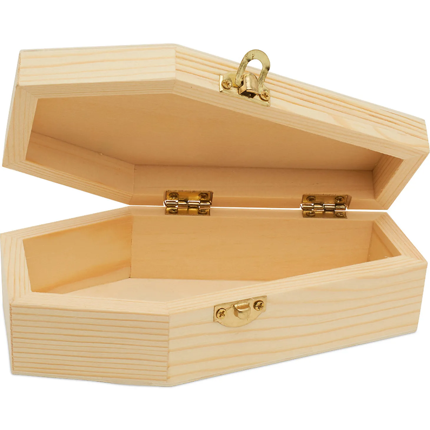 Frightfully Fantastic Details – This Pretend Casket Is Crafted From Natural Baltic Birch Wood. It Is Built Very Sturdy With Gold Metal Hinges That Open And Close Smoothly And A Gold Latch To Keep It Securely Shut.