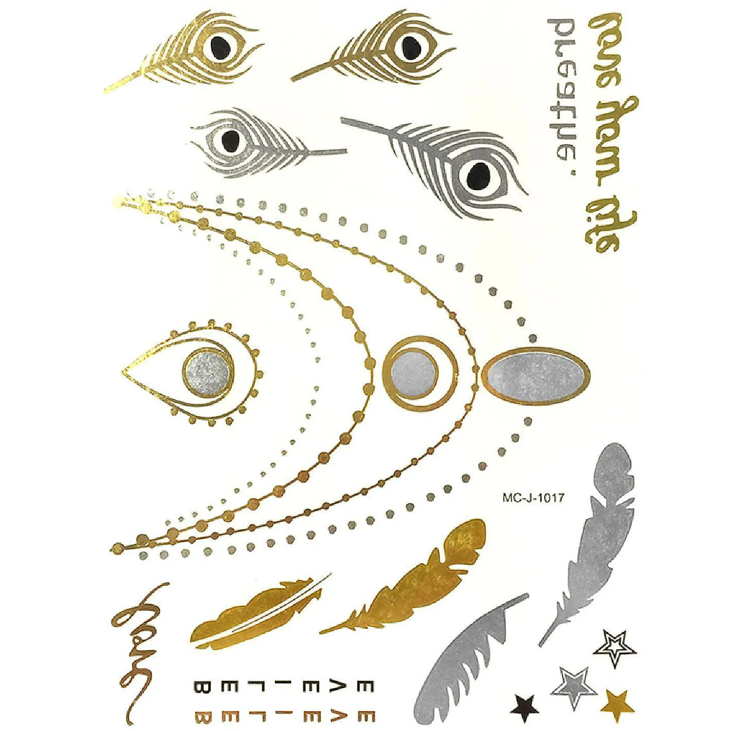 Decorate Your Body With These Exotic Temporary Tattoos That Are Inspired By Celebrities. These Tattoos Come In Shimmery Gold, Silver, And Black Colors In A Number Of Designs And Patterns. They Can Be Worn In Place Of Jewelry At The Beach / Poolside, While Clubbing, Or To Special Events. How To Apply: 1. Cut Out The Tattoo You Want To Use And Remove The Transparent Film. 2. Place The Tattoo Face Down On Your Skin. 3. Wet The Tattoo Thoroughly With A Sponge Or Damp Cloth. 4. Peel The Paper Gently To See If It Transferred (About 30 Seconds). If Not, Press Down And Wet Again. 5. Gently Remove The Paper And Allow The Tattoo To Dry. To Remove: Rub With Cold Cream, Baby Oil, Makeup Remover, Or Alcohol.Make A Statement With These Celebrity Inspired Temporary Tattoos In Metallic Gold, Silver, And Black.Wear These Tattoos In Place Of Jewelry. Great For At The Beach / Poolside, Clubbing, Or Special Events.Available In Numerous Designs And Patterns.Dimensions: Large 9.25 X 6 Inches.Easy To Apply, Just Use Water.