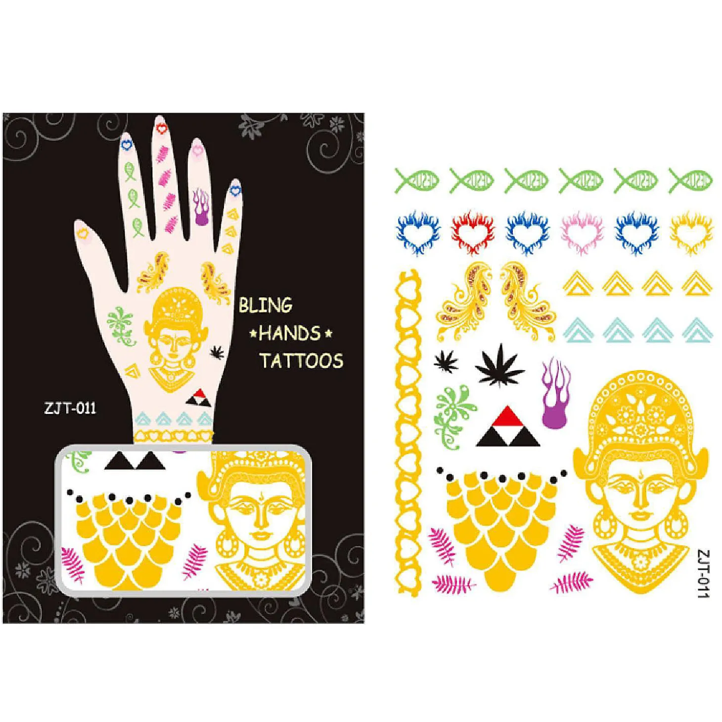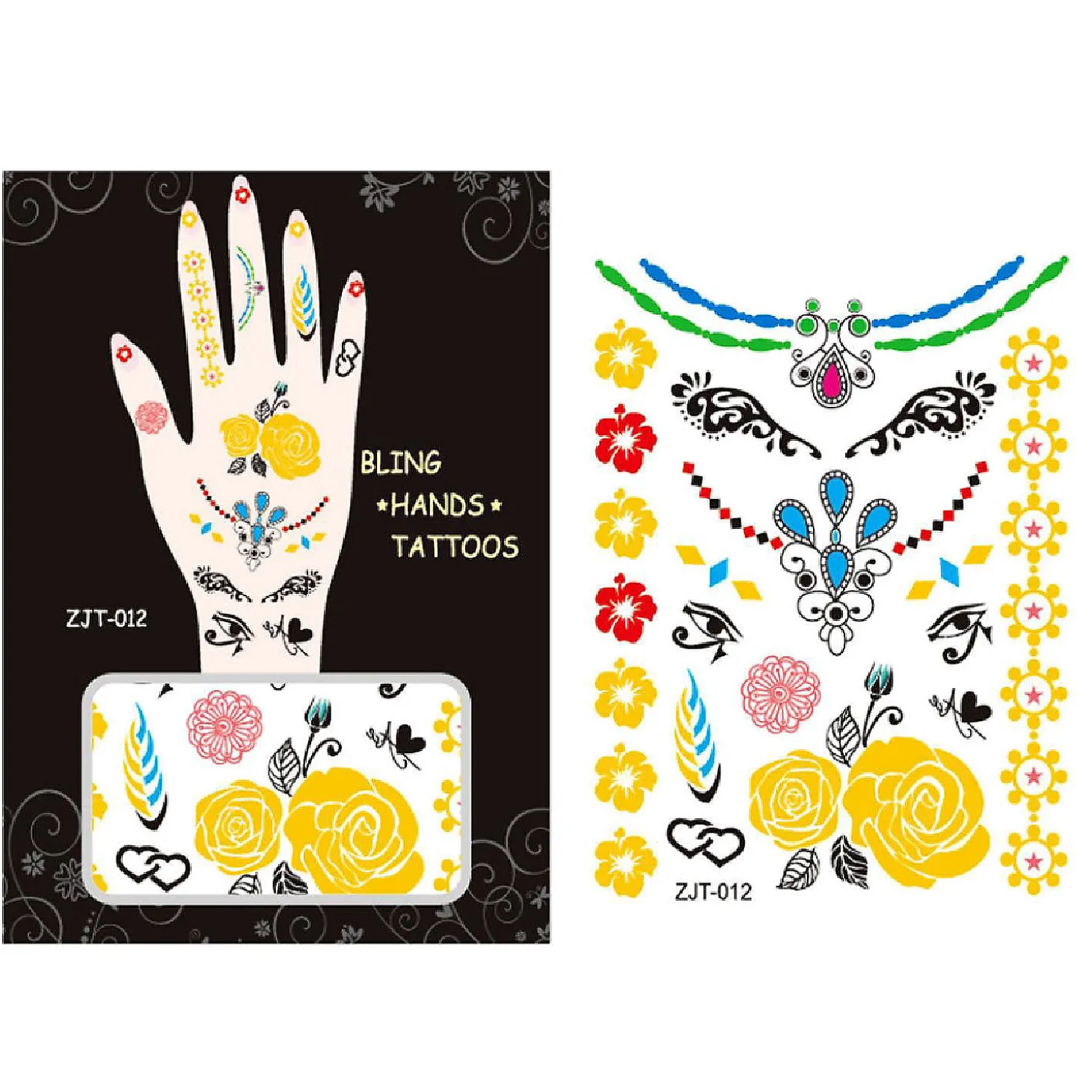 Get Noticed With These Beautiful And Exotic Hand Tattoos. These Tattoos Are Exquisite Body Art That Can Be Used In Place Of Jewelry. Available In A Number Of Colorful Designs And Patterns. Great For Wearing At The Beach / Poolside, While Clubbing, Or To Special Events.Exquisite Body Art That Can Be Worn In Place Of Jewelryavailable In A Number Of Colorful Designs And Patterns.Can Be Used At The Beach, Clubbing, Or Special Eventsdimensions: 1 Sheet. 5L X 3.75W Inches.Instructions: Cut Out Desired Tattoos, Place Face Down On Clean Skin, And Wet. Peel Off Gently After About 45 Seconds. Use Make-Up Remover Or Alcohol To Remove.