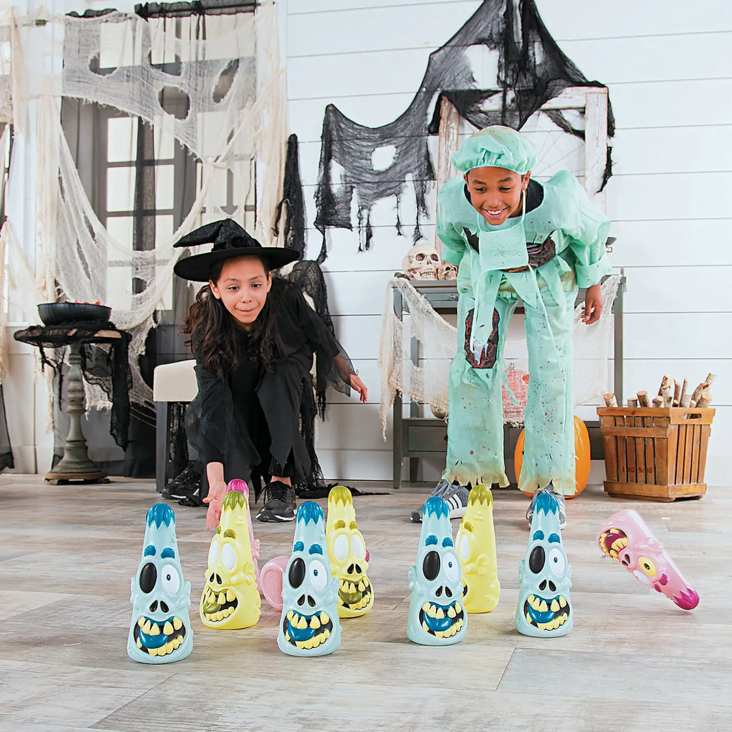 Make Your Halloween Celebrations Extra Fun This Year When You Include This Zombie Bowling Game In Your Party Supplies. Featuring Assorted Zombie Pins And Bowling Balls That Look Like Brains, This Bowling Game Is Perfect For Classroom Celebrations, Office Costume Parties And More. Includes 10 Pins And 2 Balls. Plastic. Pins, 3 1/2″ X 8 1/2″; Balls, 4″ Diam. © Otc
